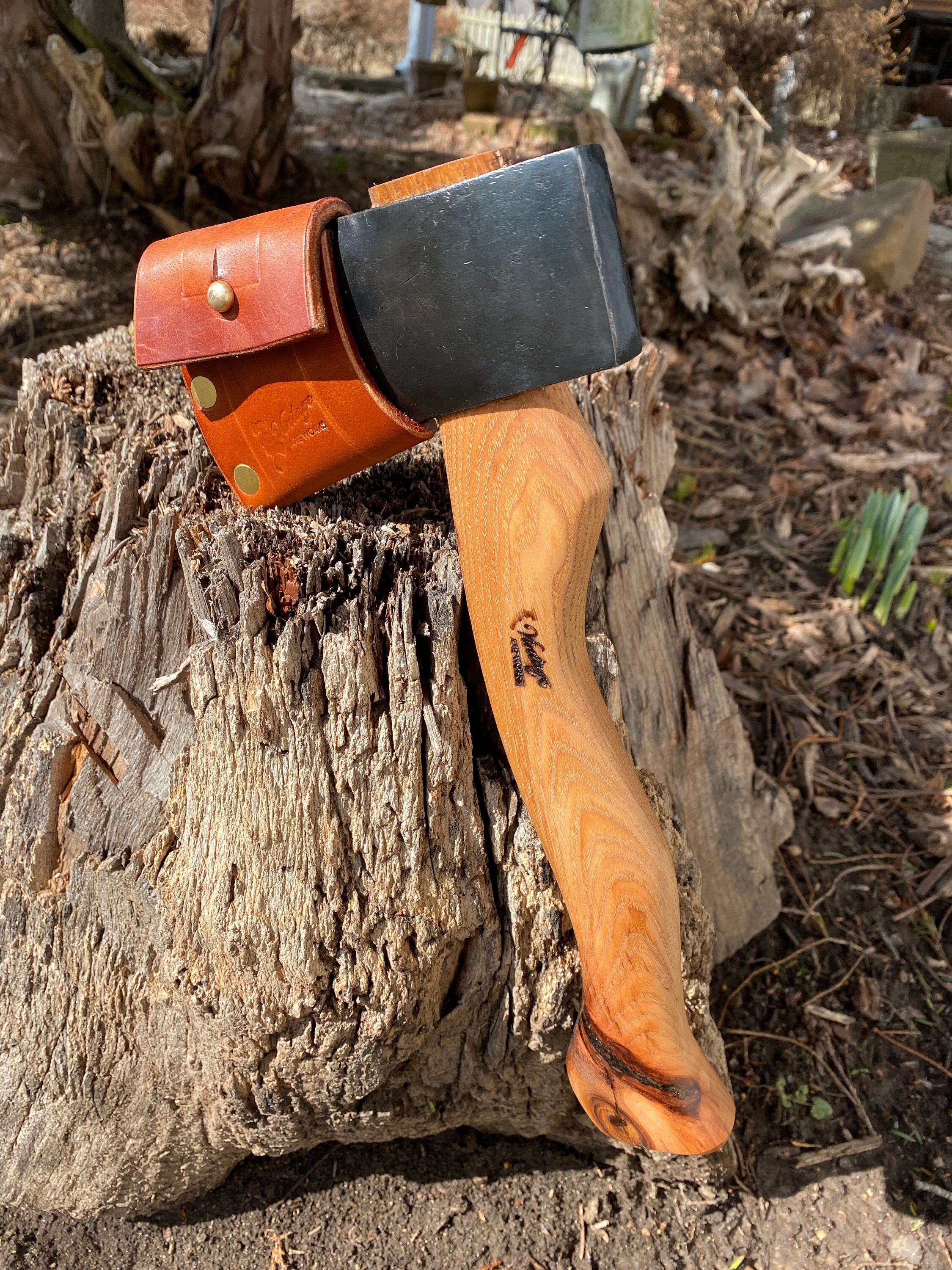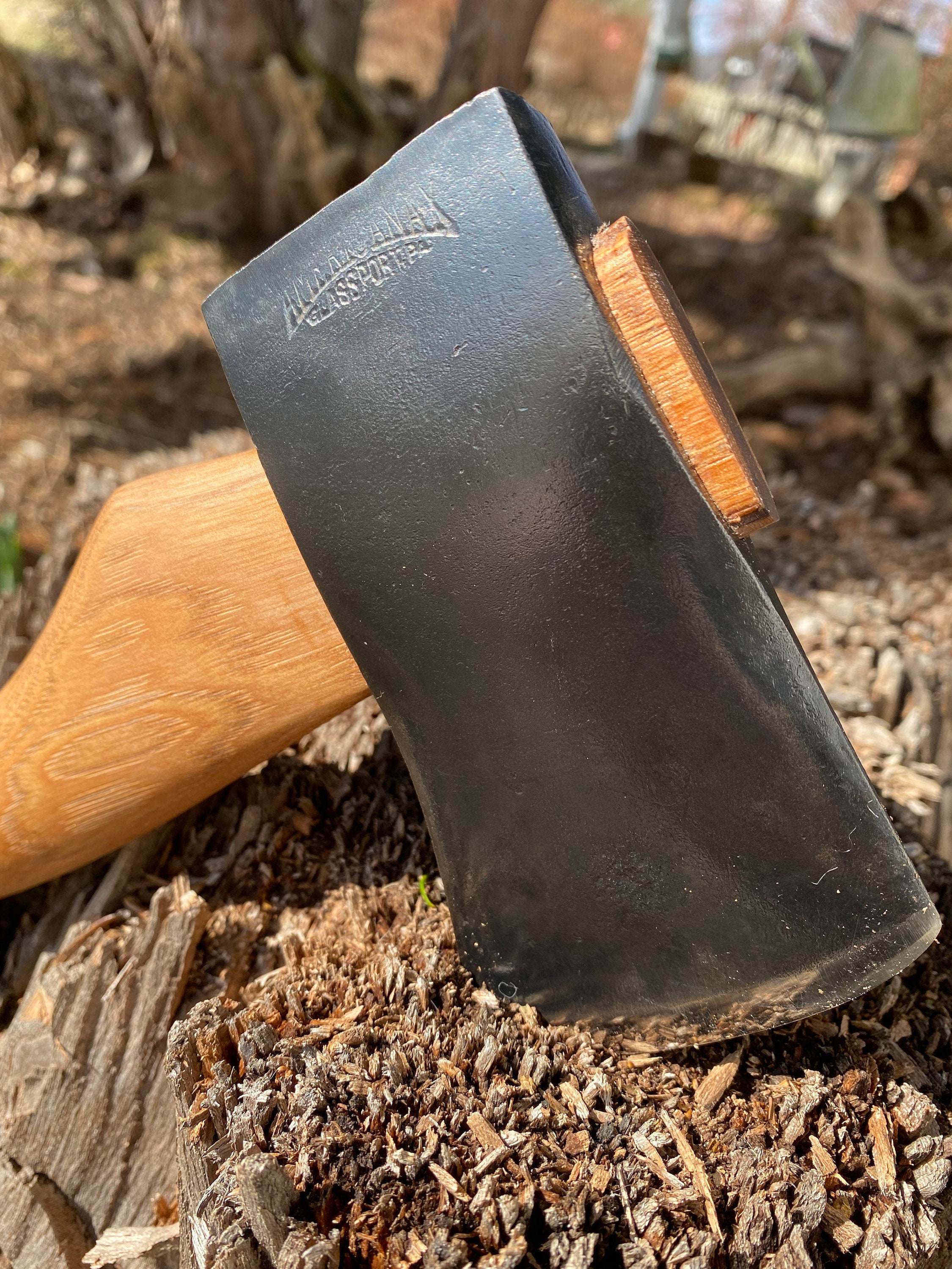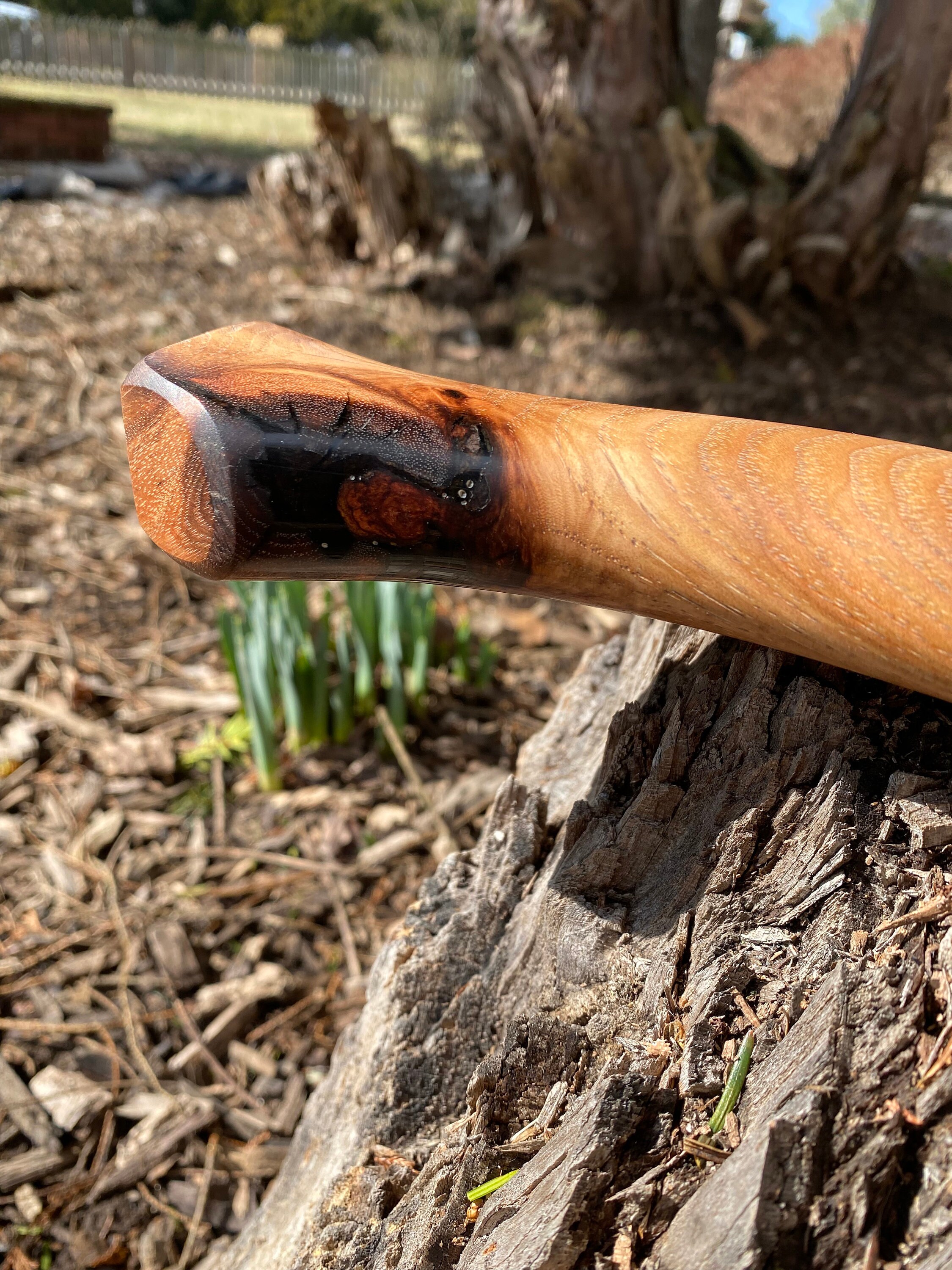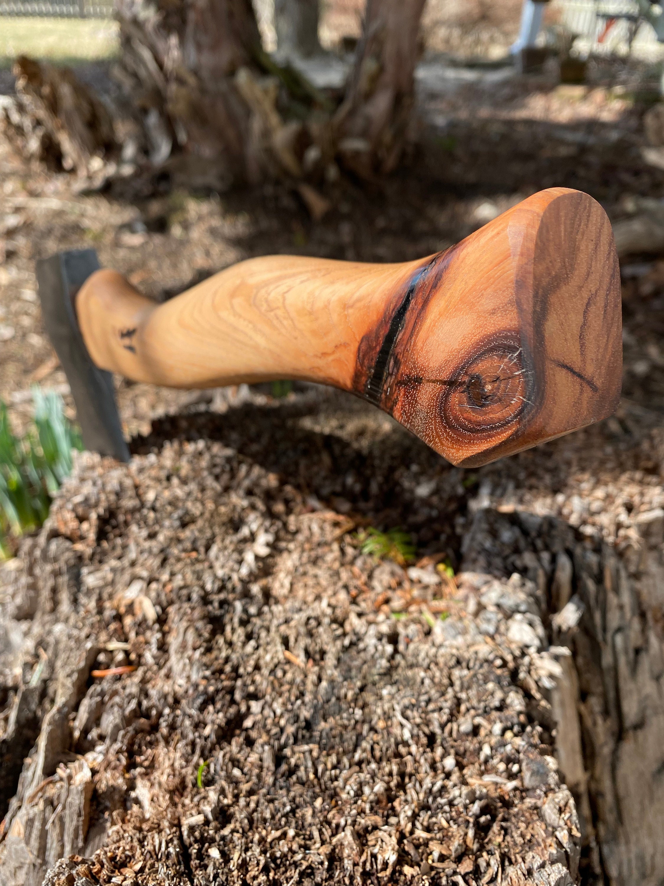 New 12” handle has been void-filled with Total Boat High Performance 2:1 Epoxy and has been polished to a glass-like finish and is stunningly beautiful. There are a few minor inclusions on the surface of the epoxy. The handle has been HAND-SHAPED and hand-rubbed with Odie’s Oil for a clean, smooth look and feel. Clean seal around top and bottom of eye and hung with a walnut wedge – handle sticks out from head approximately 3/16”.