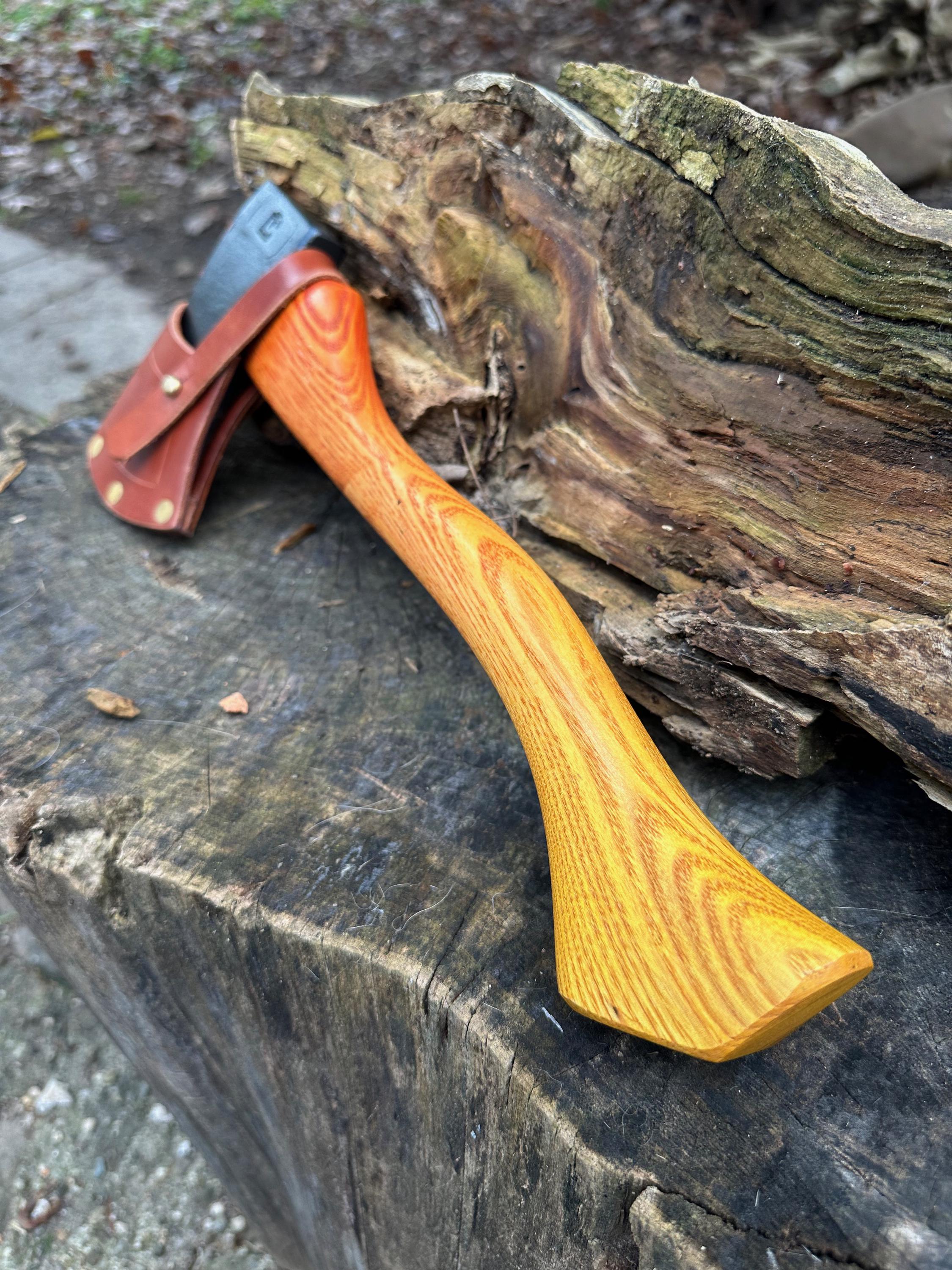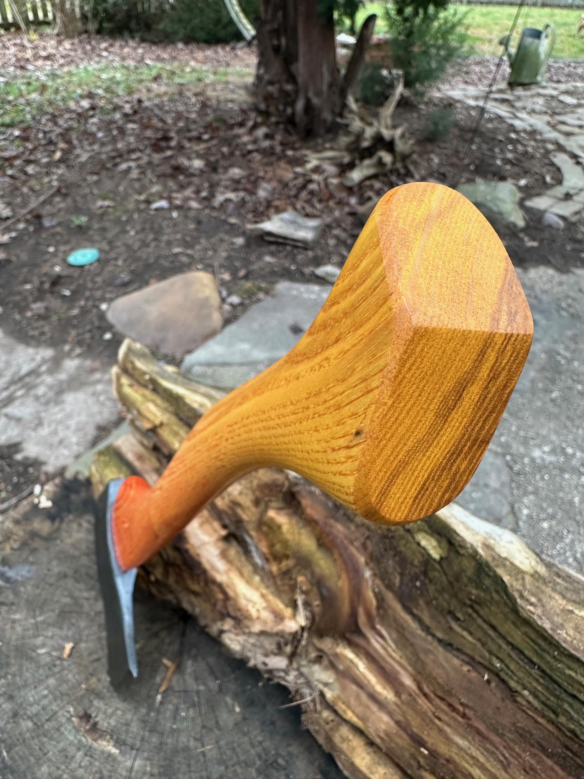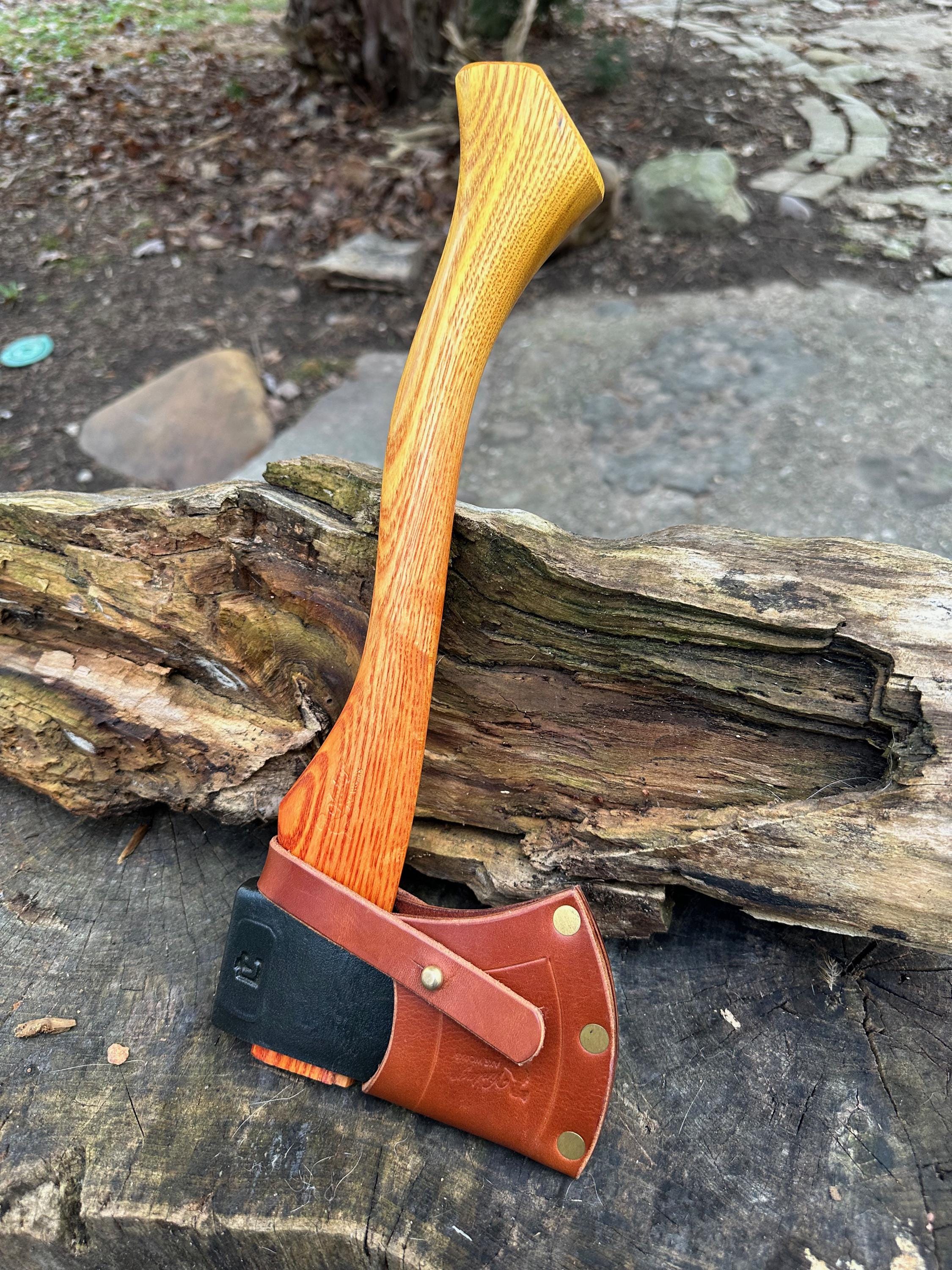 New ash handle has multiple coats of wood dye that fades from the head to the palm swell. HAND-SHAPED, hand sanded, soaked in Odie’s Oil and hand-rubbed for a clean, smooth look and feel. Clean seal around top and bottom of eye and hung with a hardwood wedge – handle sticks out from head approximately 3/16”.
