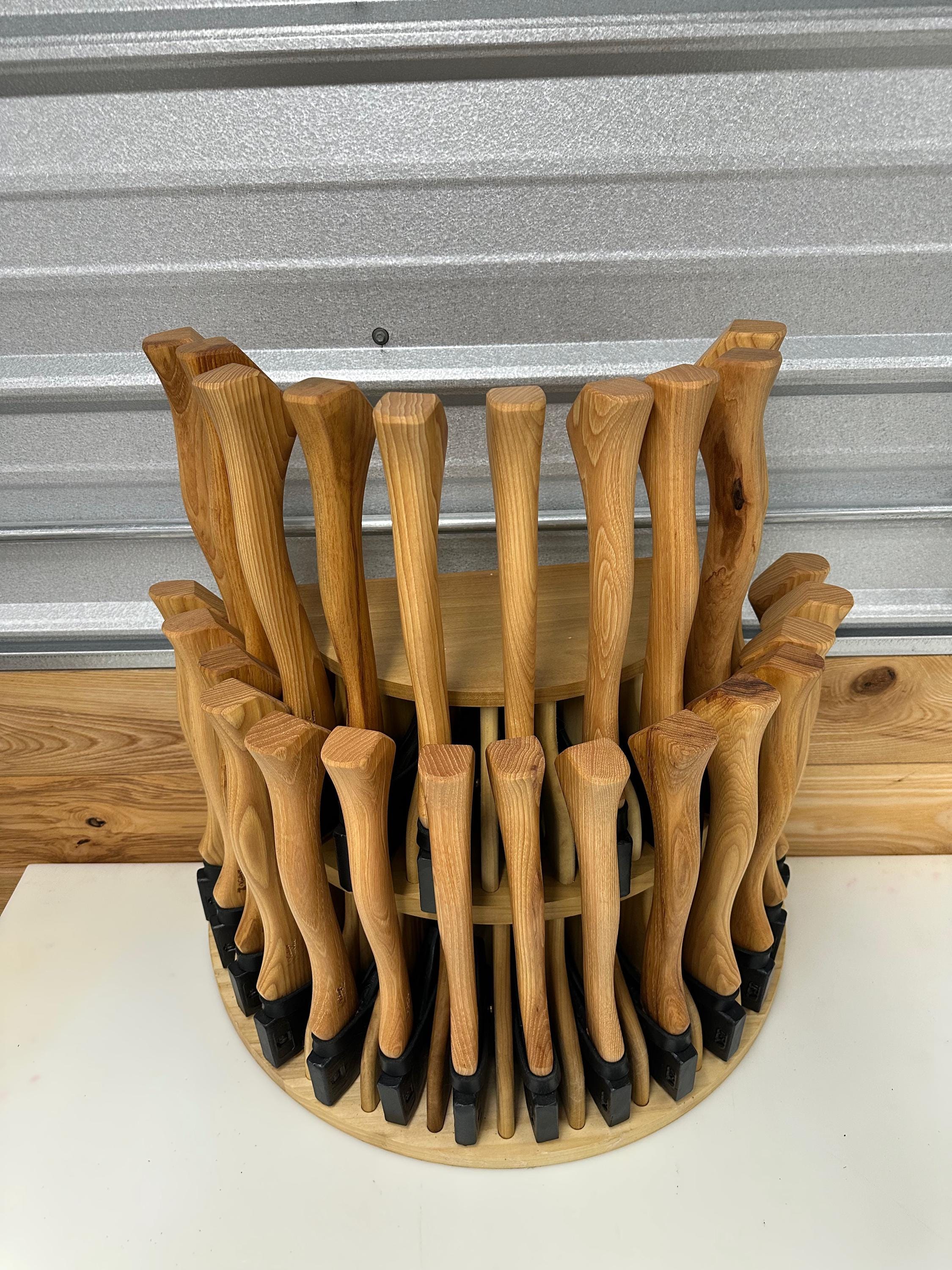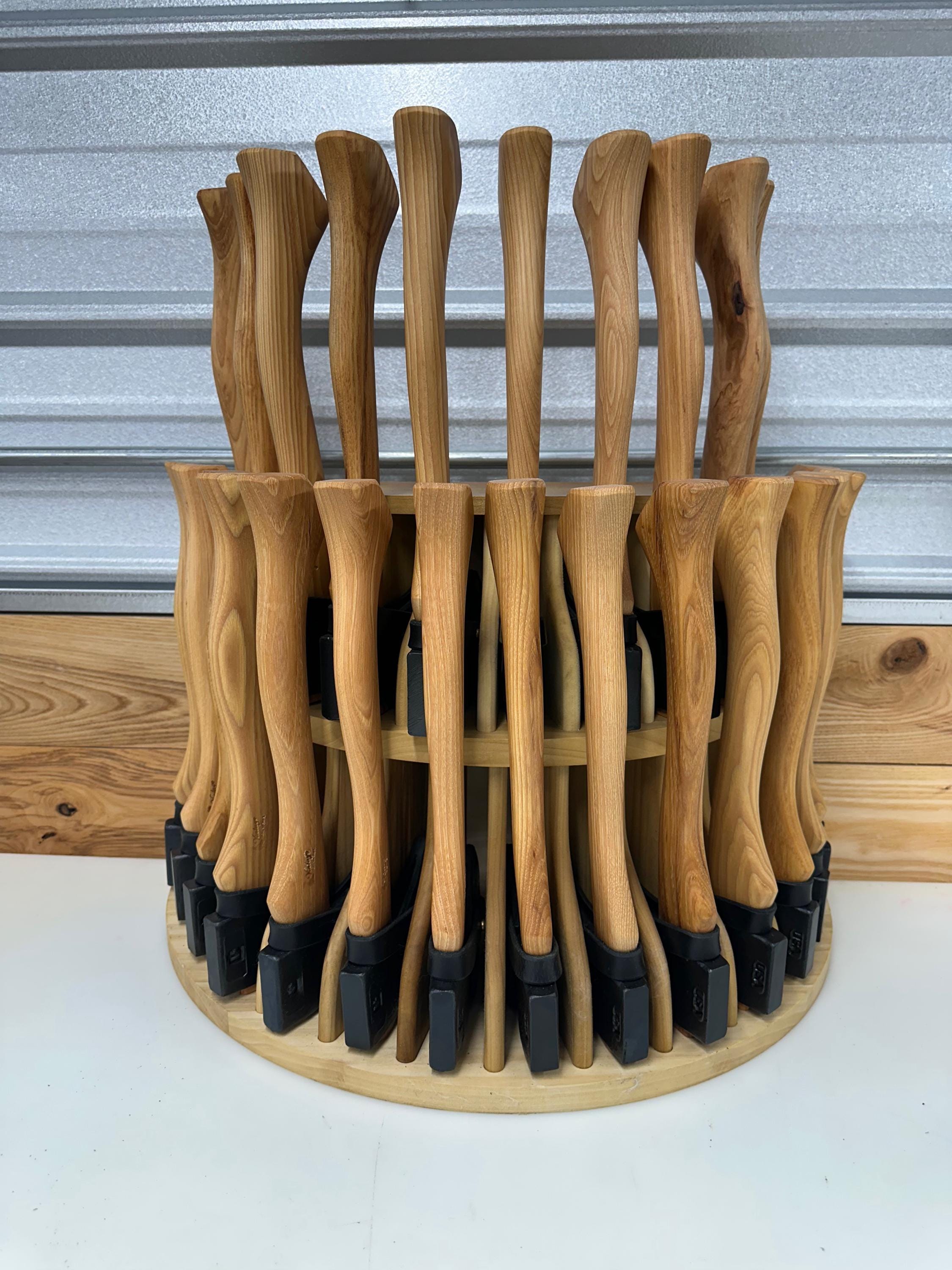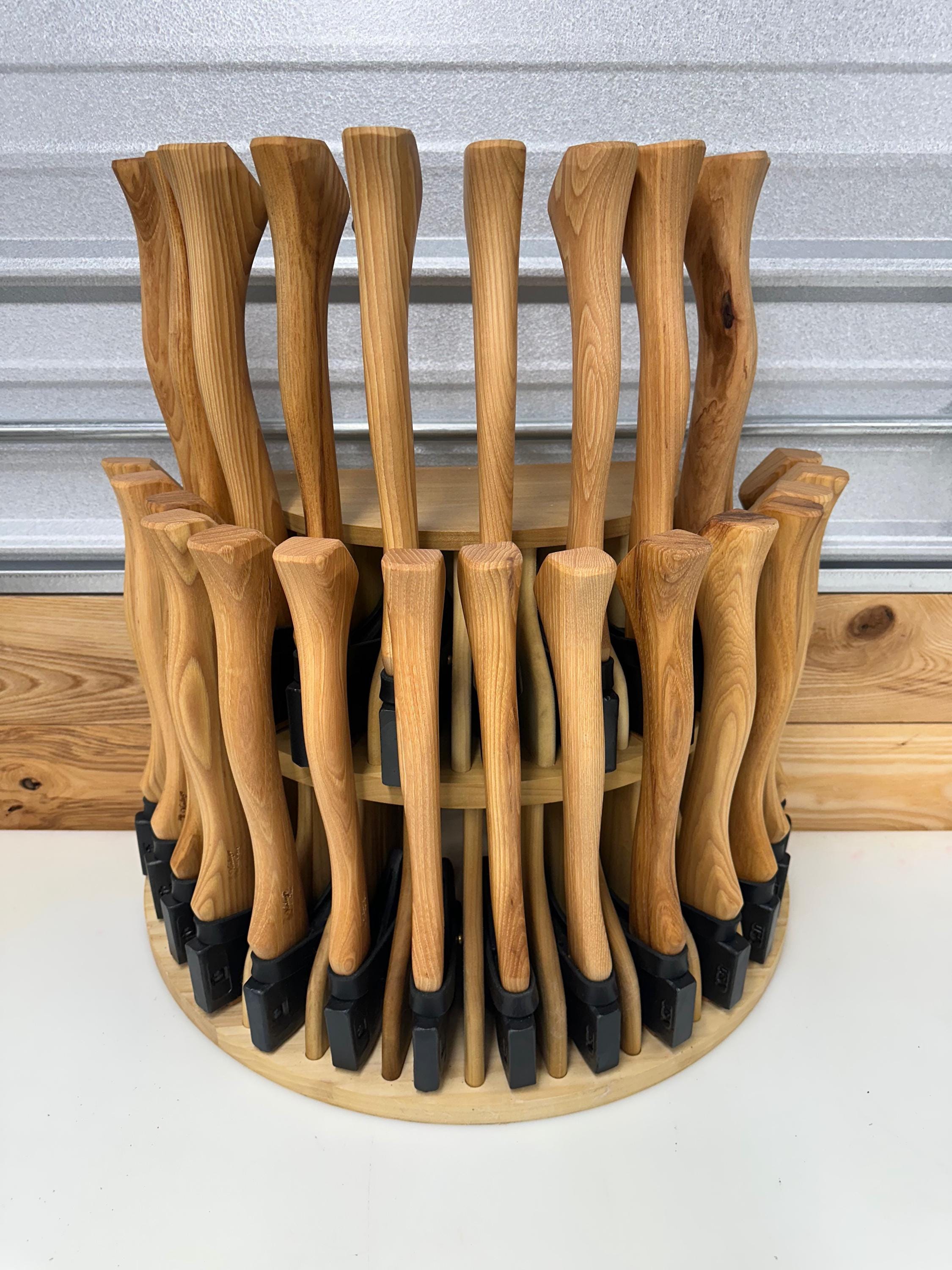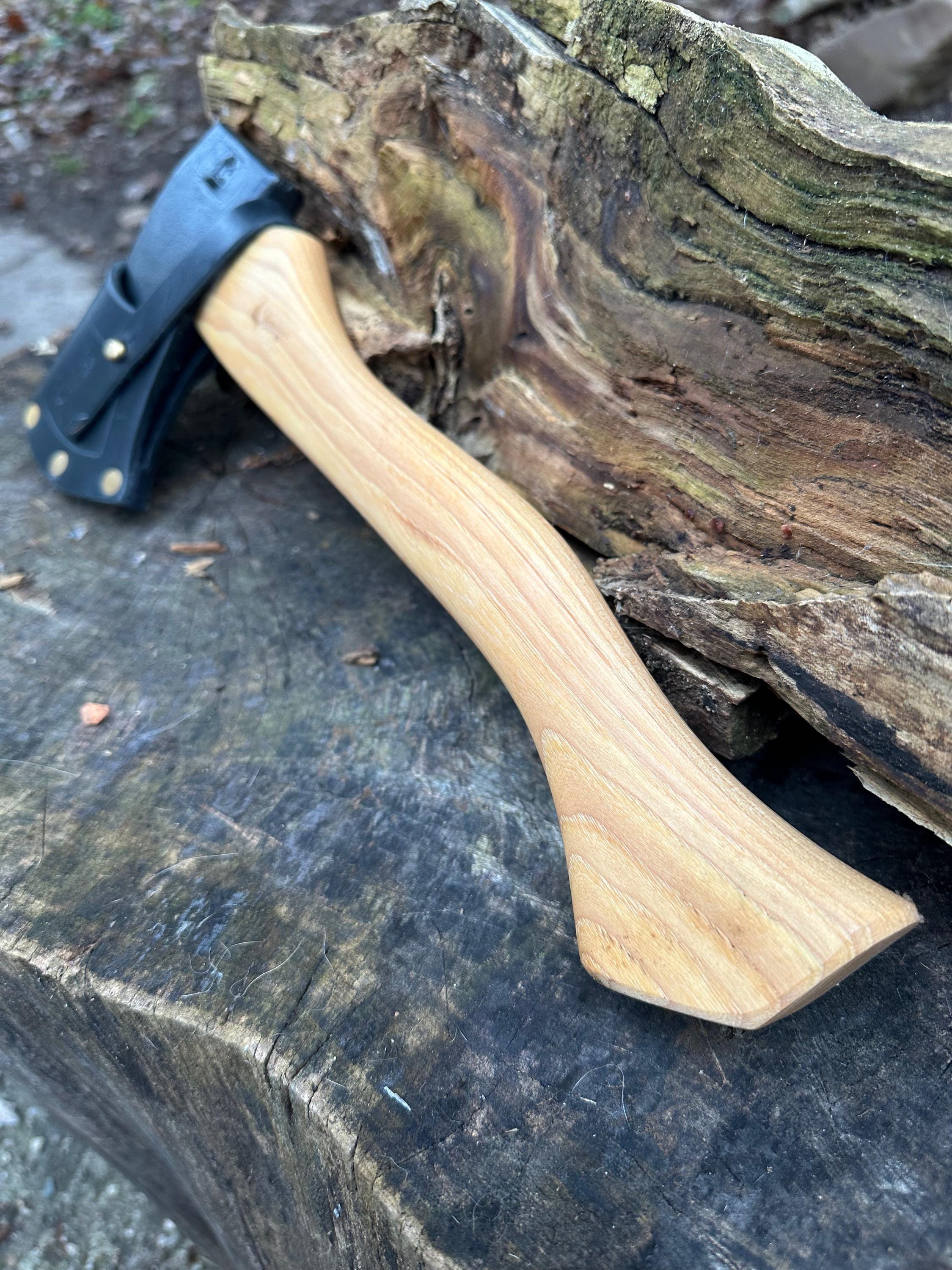 New handle is has been HAND-SHAPED, hand sanded, soaked in Odie’s Oil and boiled linseed oil and hand-rubbed for a clean, smooth look and feel. Clean seal around top and bottom of eye and hung with a hardwood wedge – handle sticks out from head approximately 3/16”.