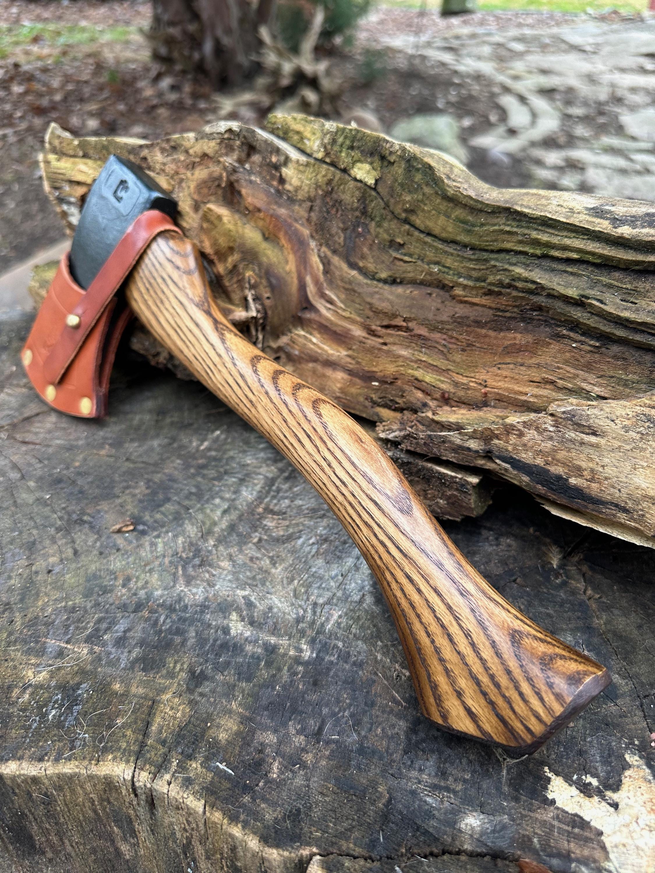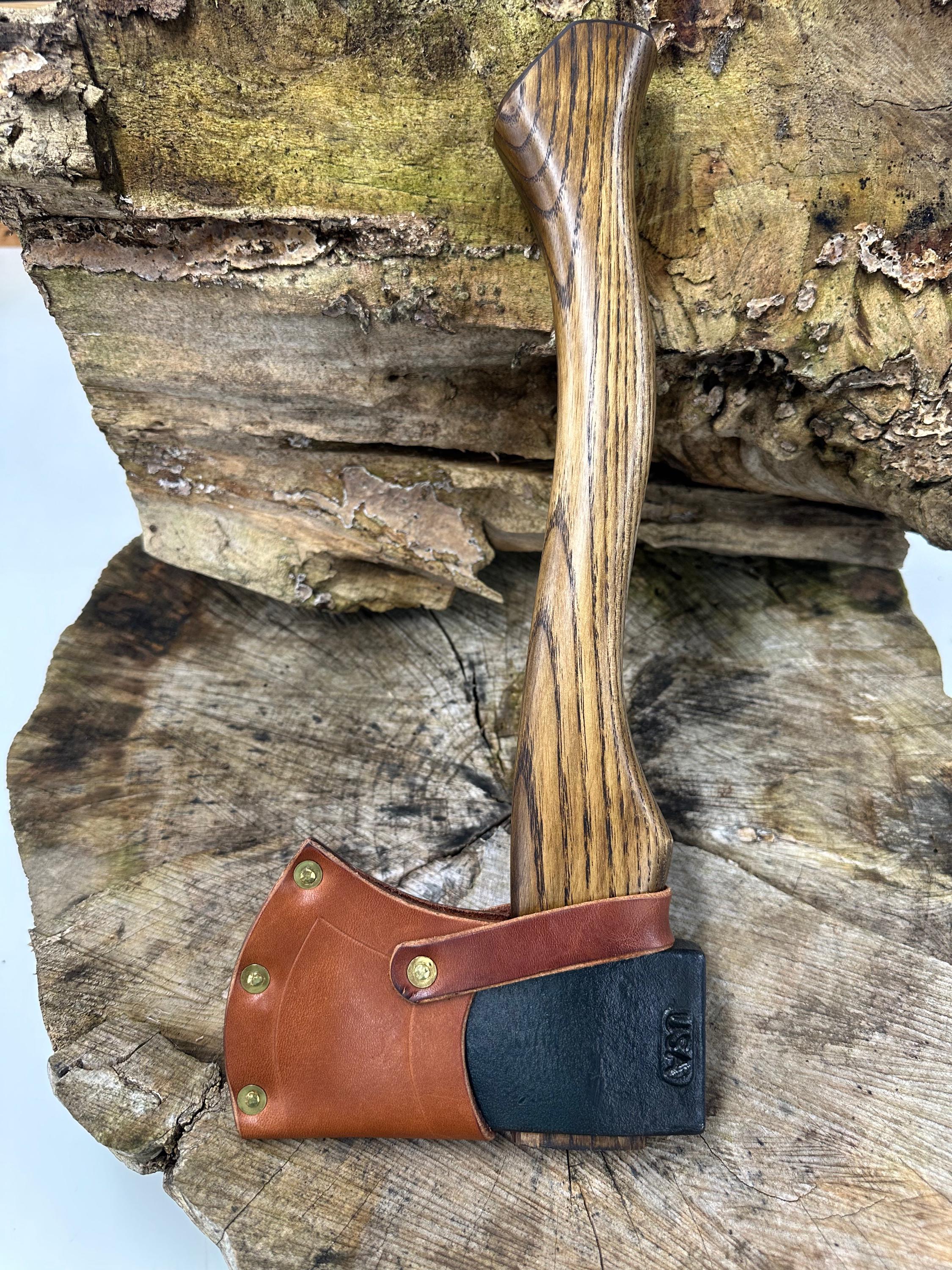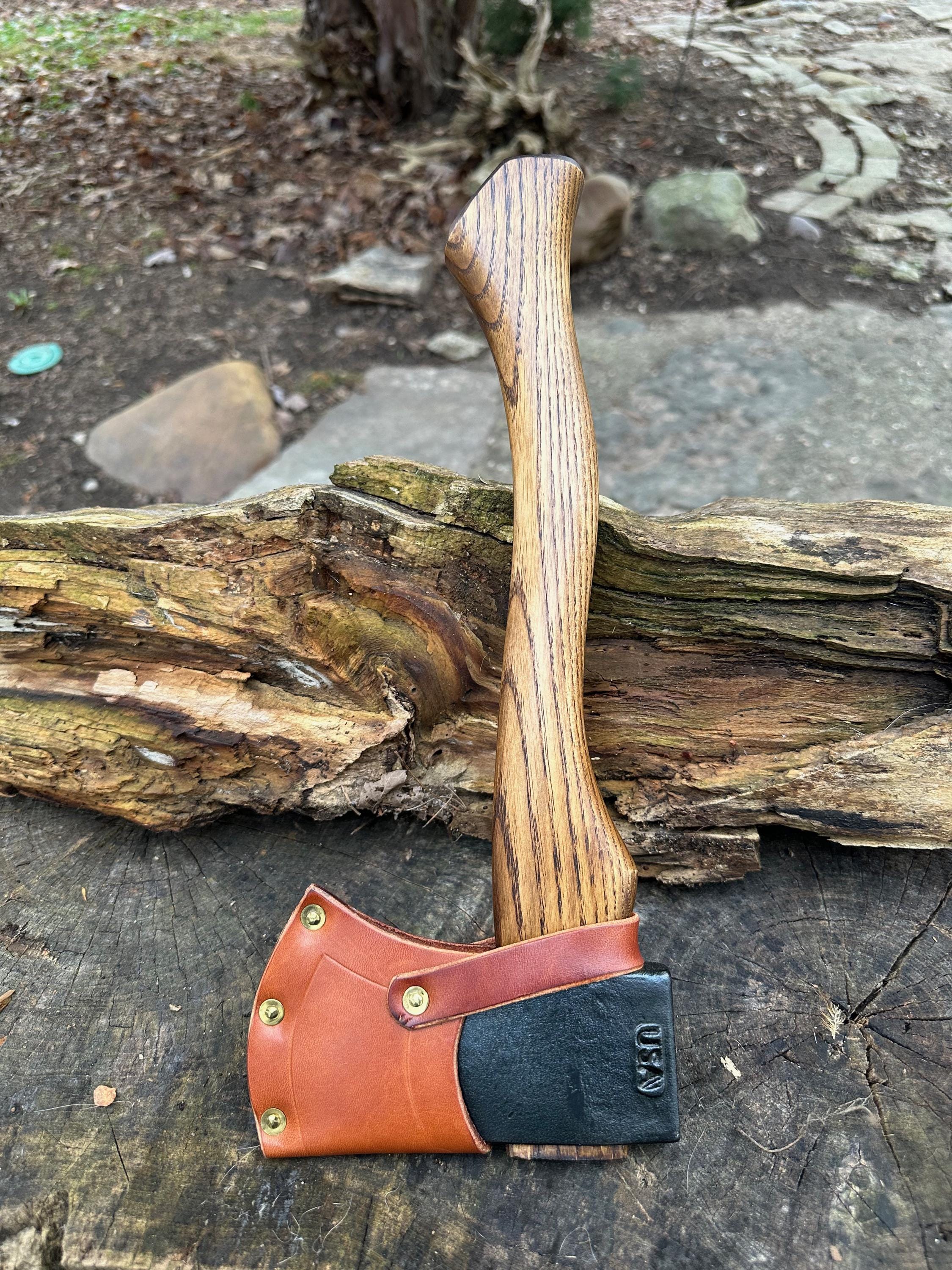 New ash handle has multiple coats of wood dye that darkens at the palm swell. HAND-SHAPED, hand sanded, soaked in Odie’s Oil and hand-rubbed for a clean, smooth look and feel. Clean seal around top and bottom of eye and hung with a hardwood wedge – handle sticks out from head approximately 3/16”.