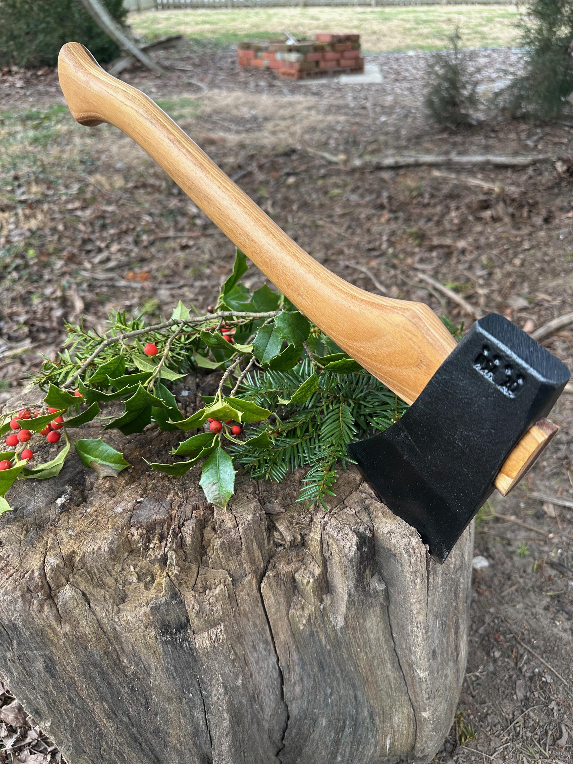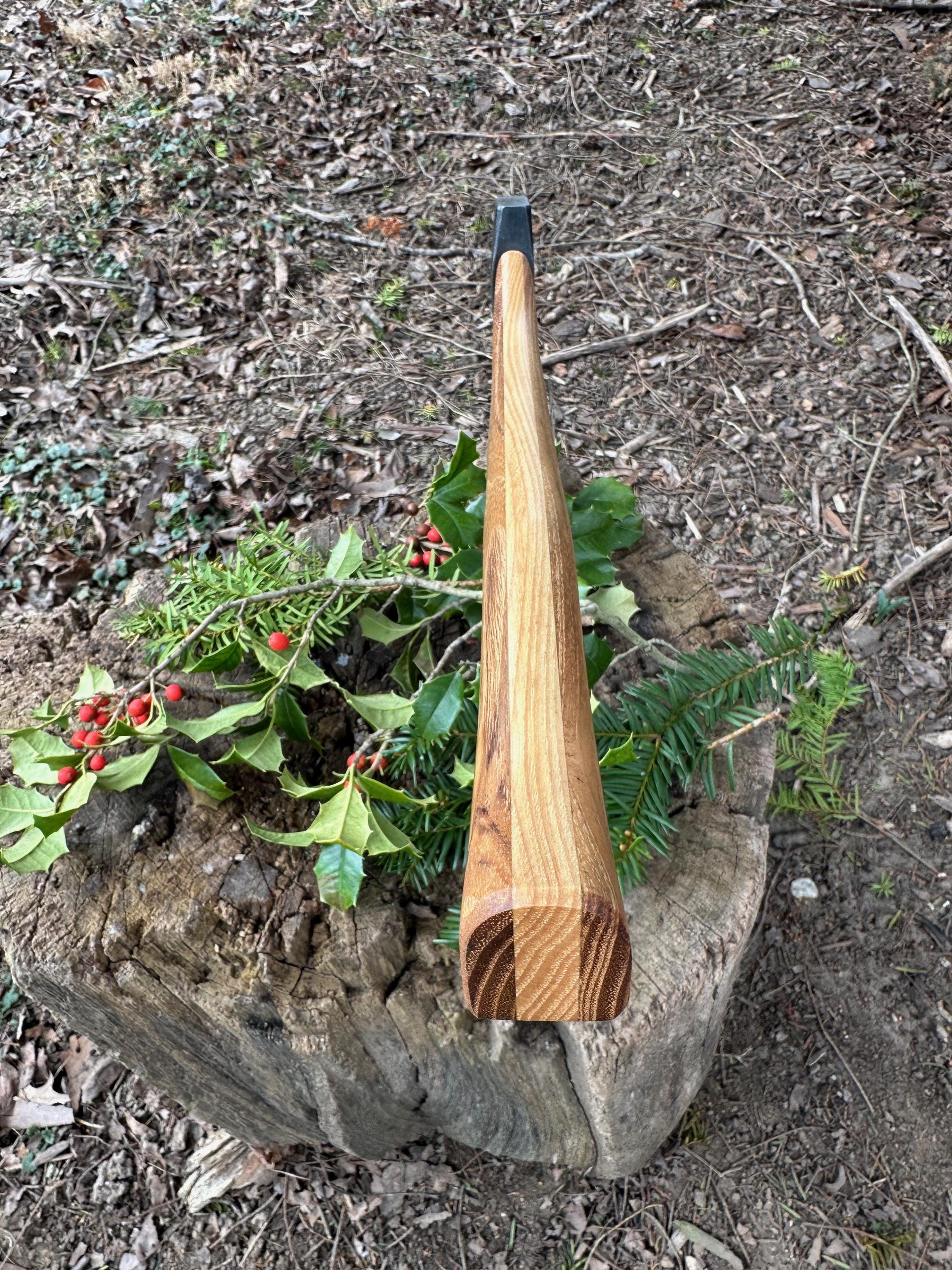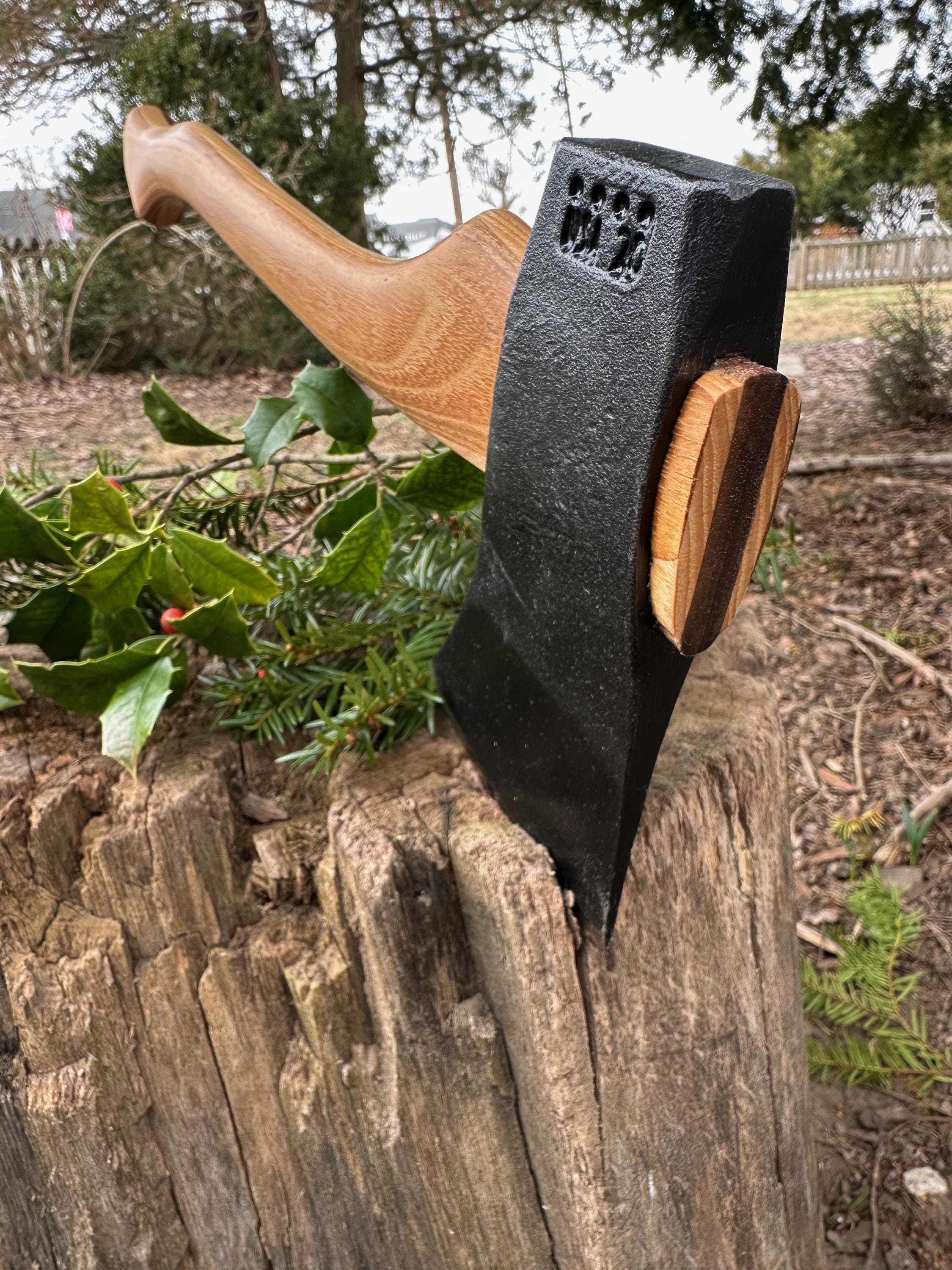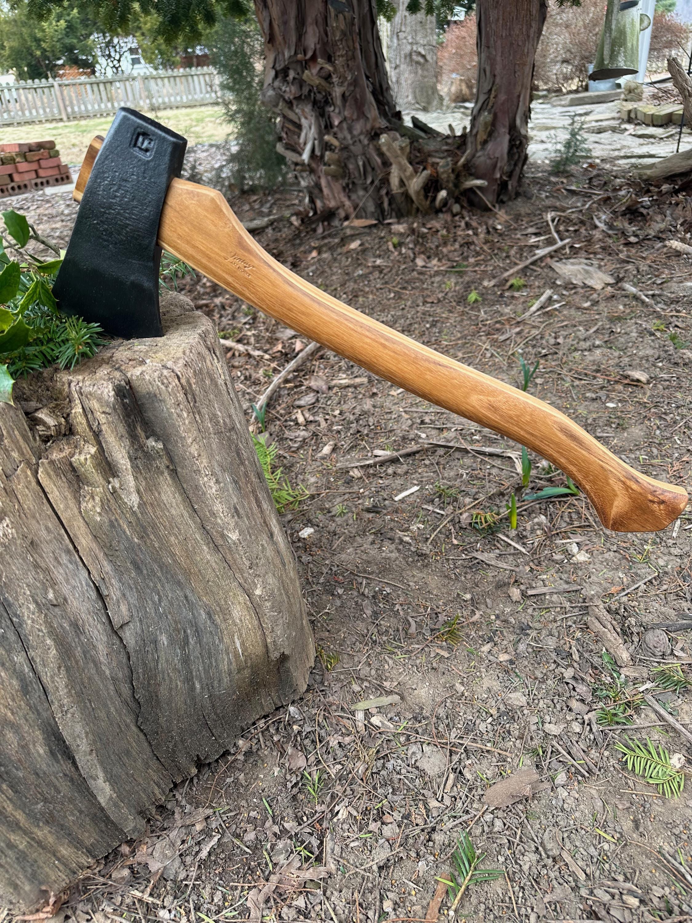 New laminated handle is made of black locust over hickory and has beautiful streaking throughout . HAND-SHAPED, hand sanded, soaked in Odie’s Oil and hand-rubbed for a clean, smooth look and feel. Clean seal around top and bottom of eye and hung with a hardwood wedge – handle sticks out from head approximately 3/16”.