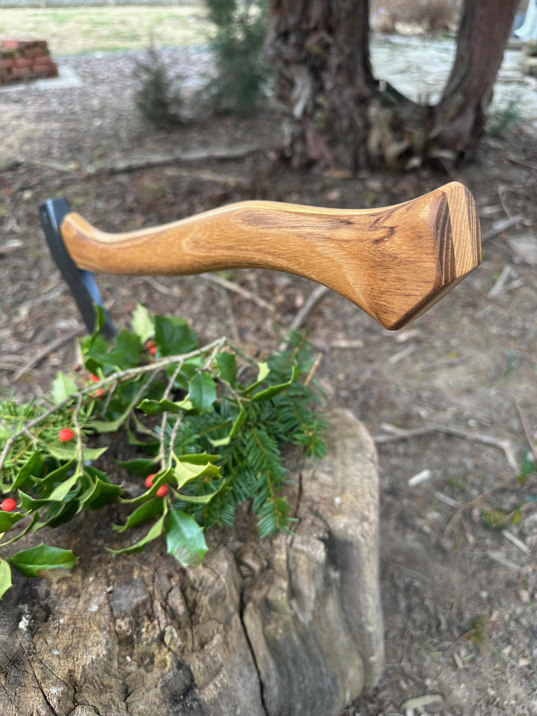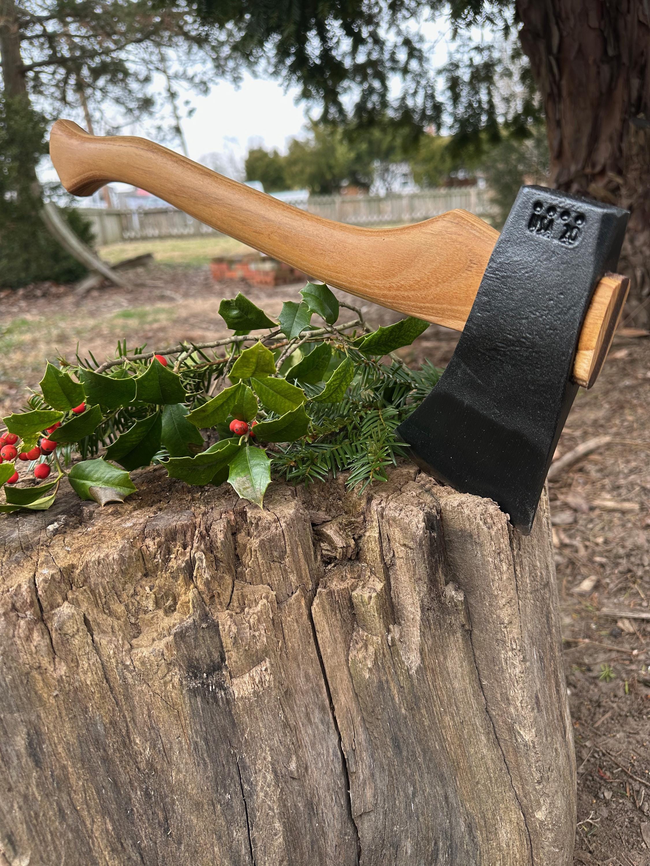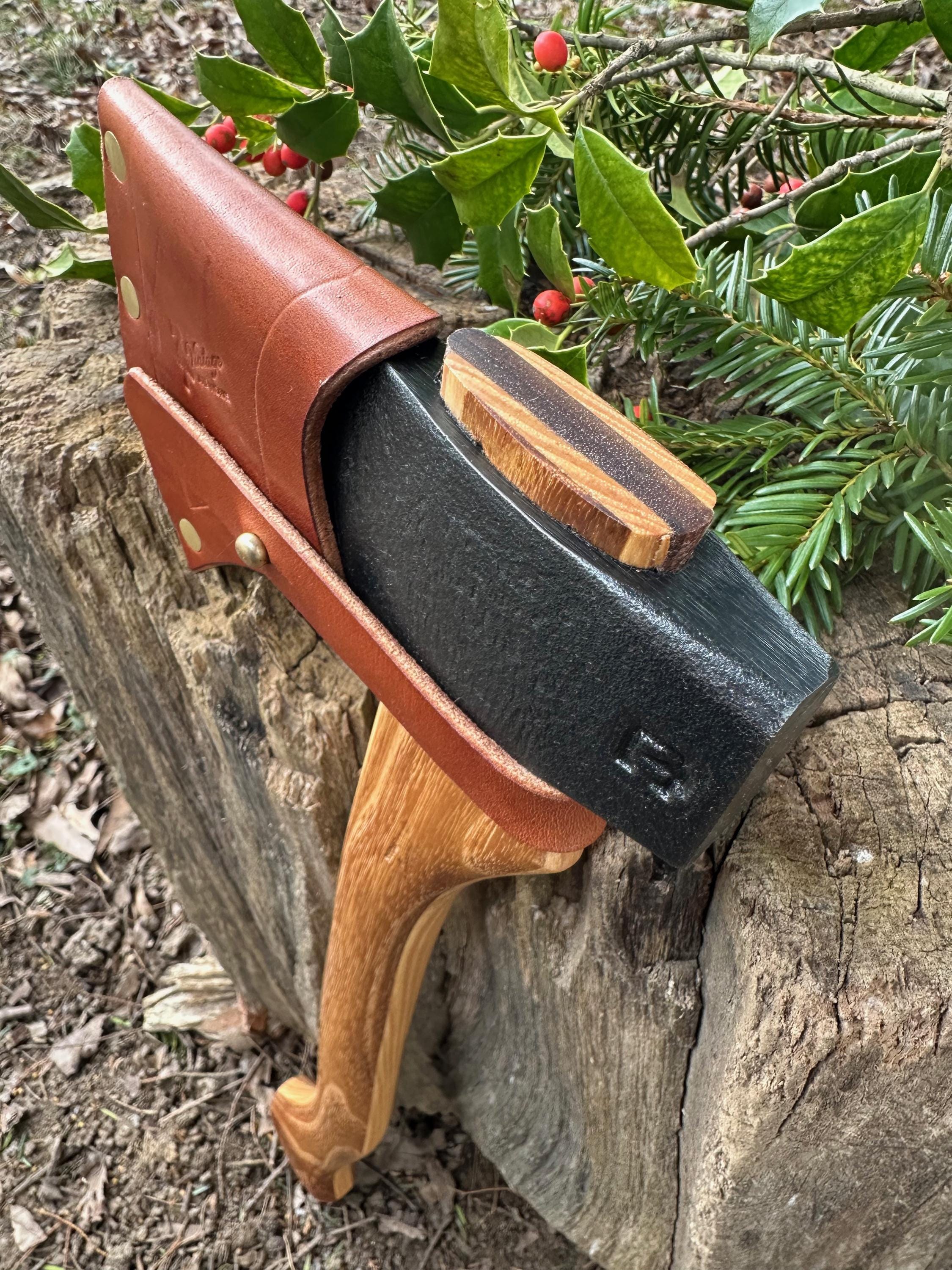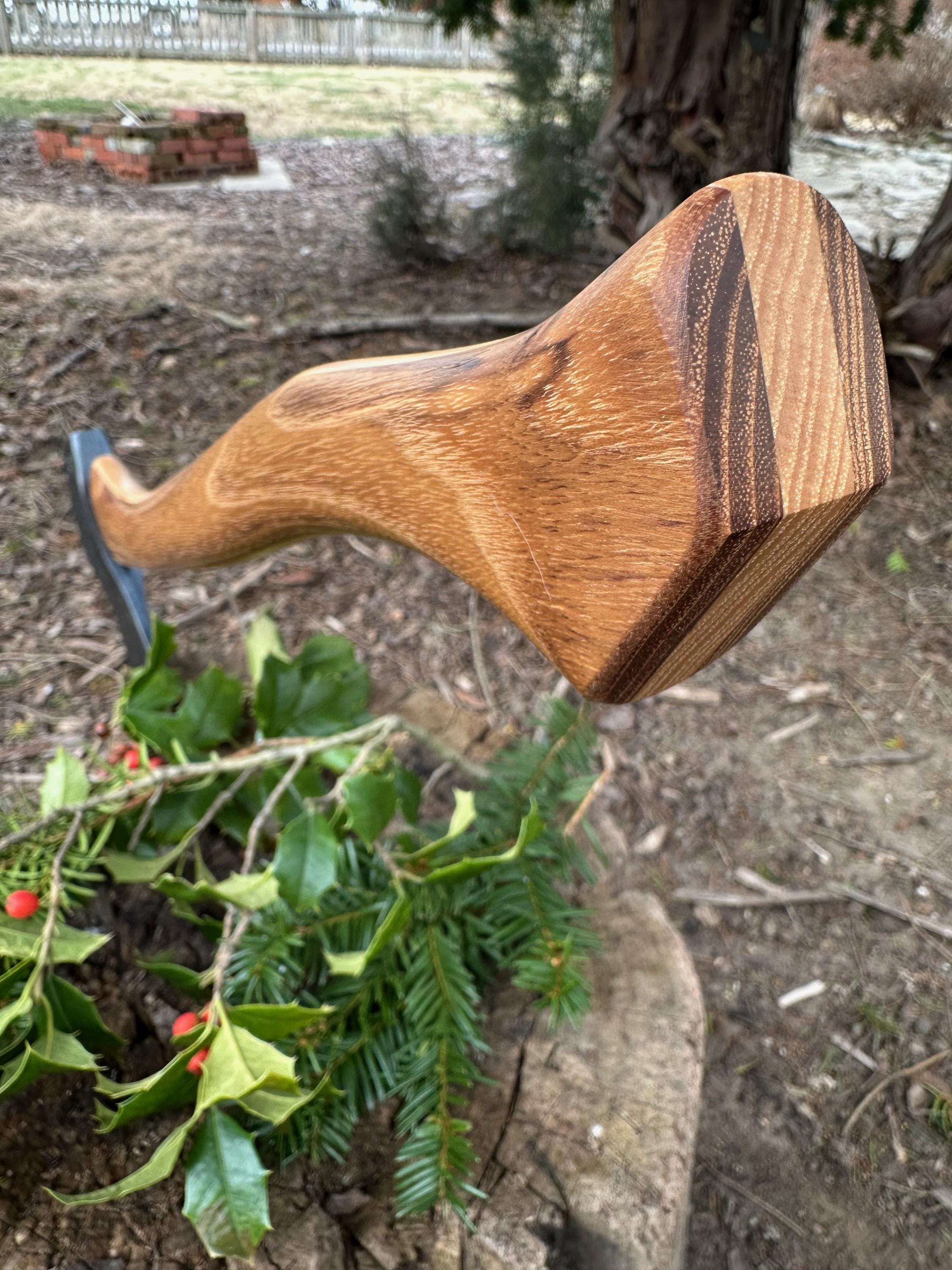 New laminated handle is made of black locust over hickory and has beautiful streaking throughout . HAND-SHAPED, hand sanded, soaked in Odie’s Oil and hand-rubbed for a clean, smooth look and feel. Clean seal around top and bottom of eye and hung with a hardwood wedge – handle sticks out from head approximately 3/16”.