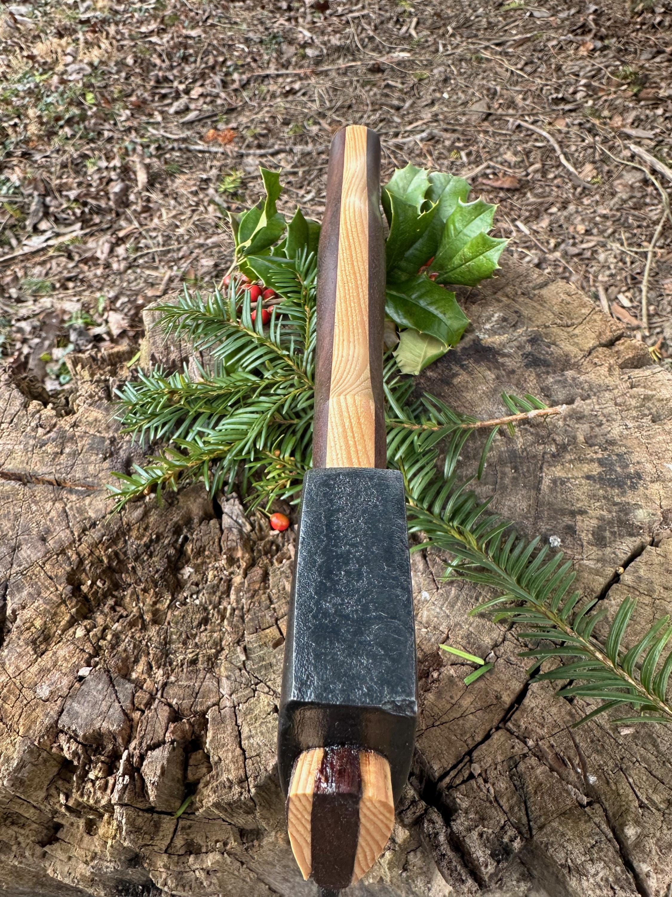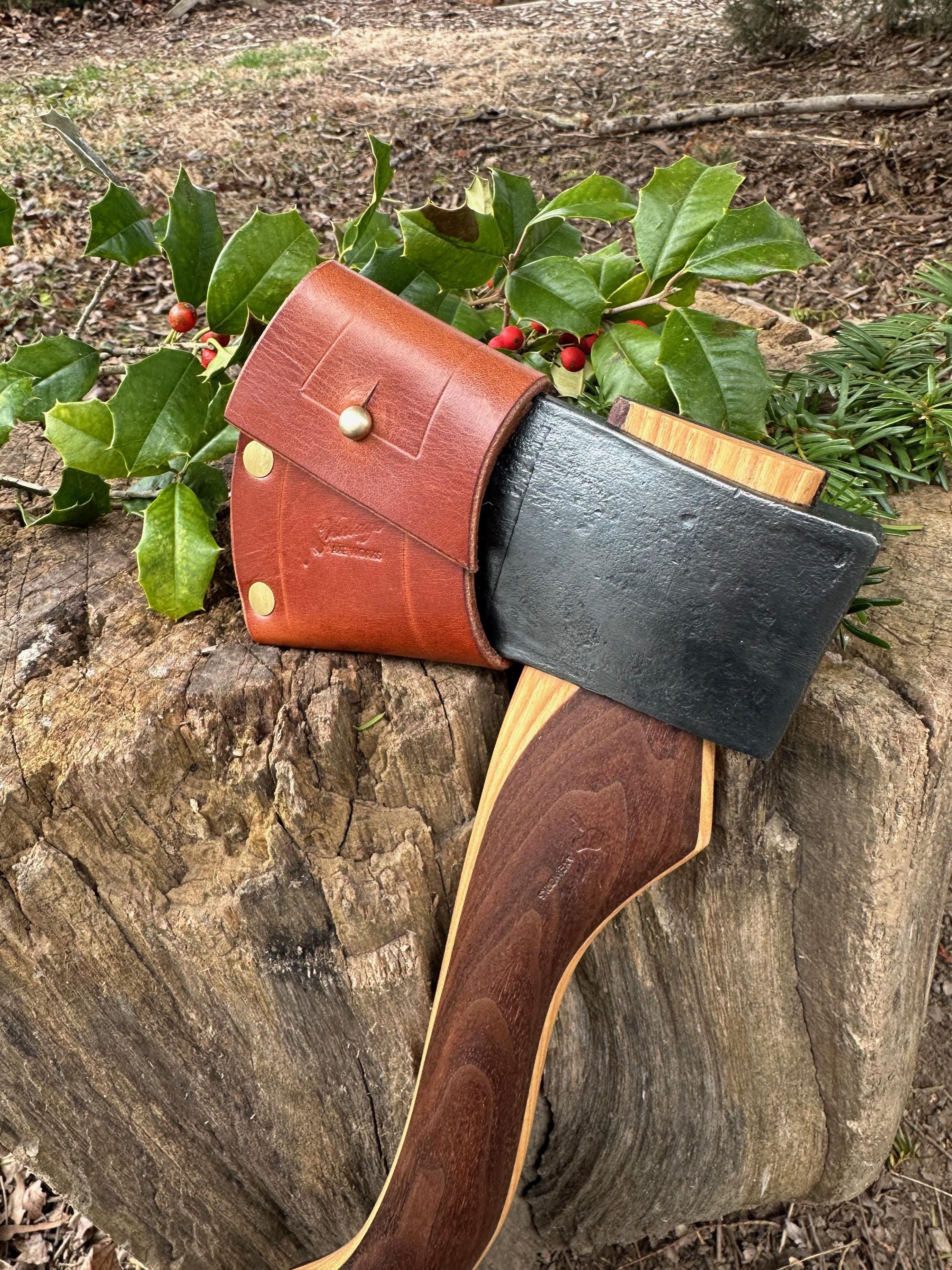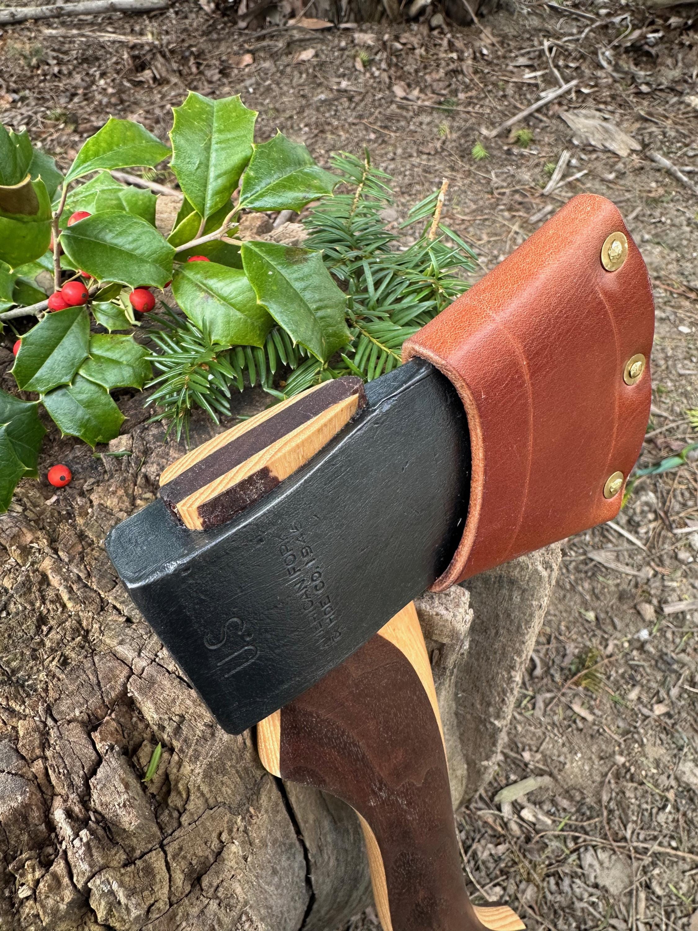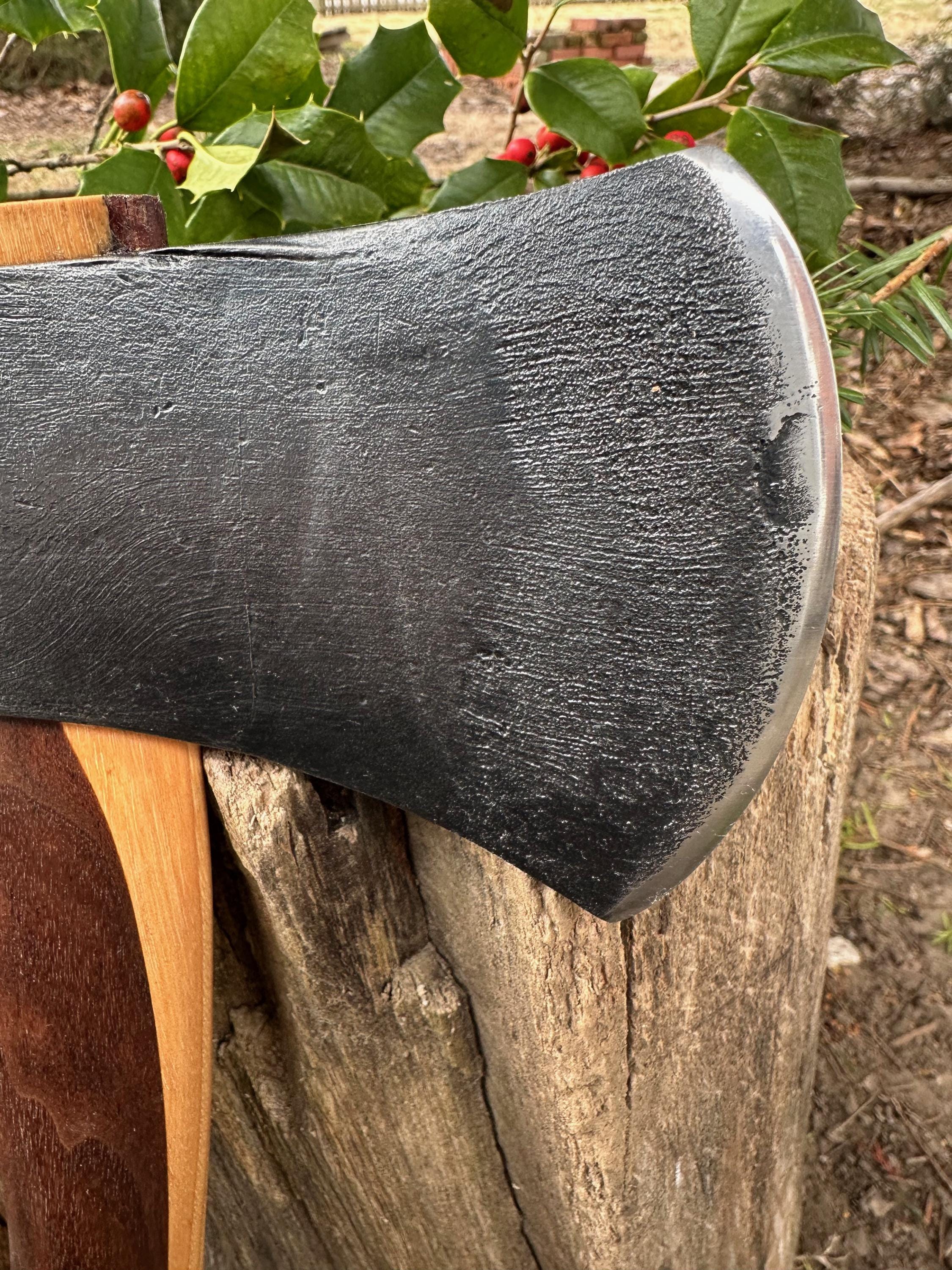 New laminated handle is made of walnut over hickory and has beautiful cathedral grain on both sides’. HAND-SHAPED, hand sanded, soaked in Odie’s Oil and hand-rubbed for a clean, smooth look and feel. Clean seal around top and bottom of eye and hung with a hardwood wedge – handle sticks out from head approximately 3/16”.