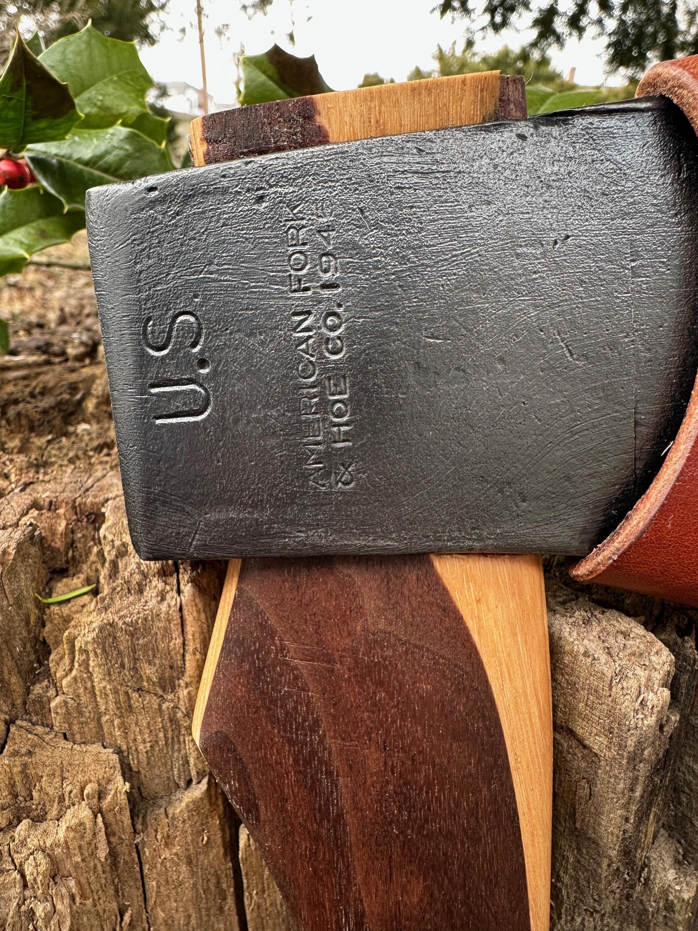 American Fork & Hoe Co. U.S. 1945 military issue WWII hatchet has been completely restored, refinished, and is razor sharp. Head is in very good condition – no breaks, cracks, or repairs. Stamps on back are deep and clean, with only the “5” in the date being faint. Head appeared to be profiled forever ago, and was left alone. Vertical lines on front and back of head are manufacturing marks, NOT cracks or defects. See pics for actual details.