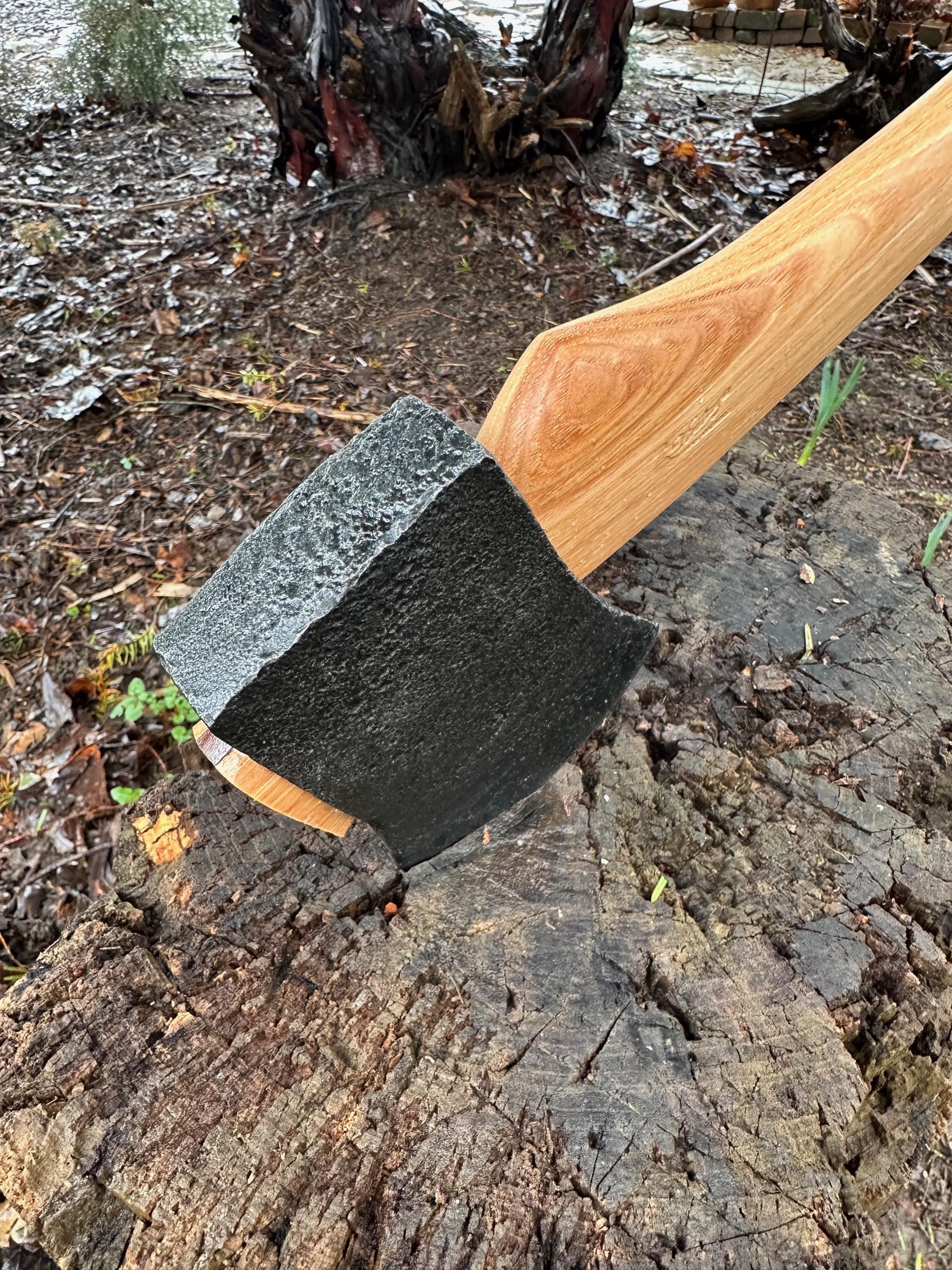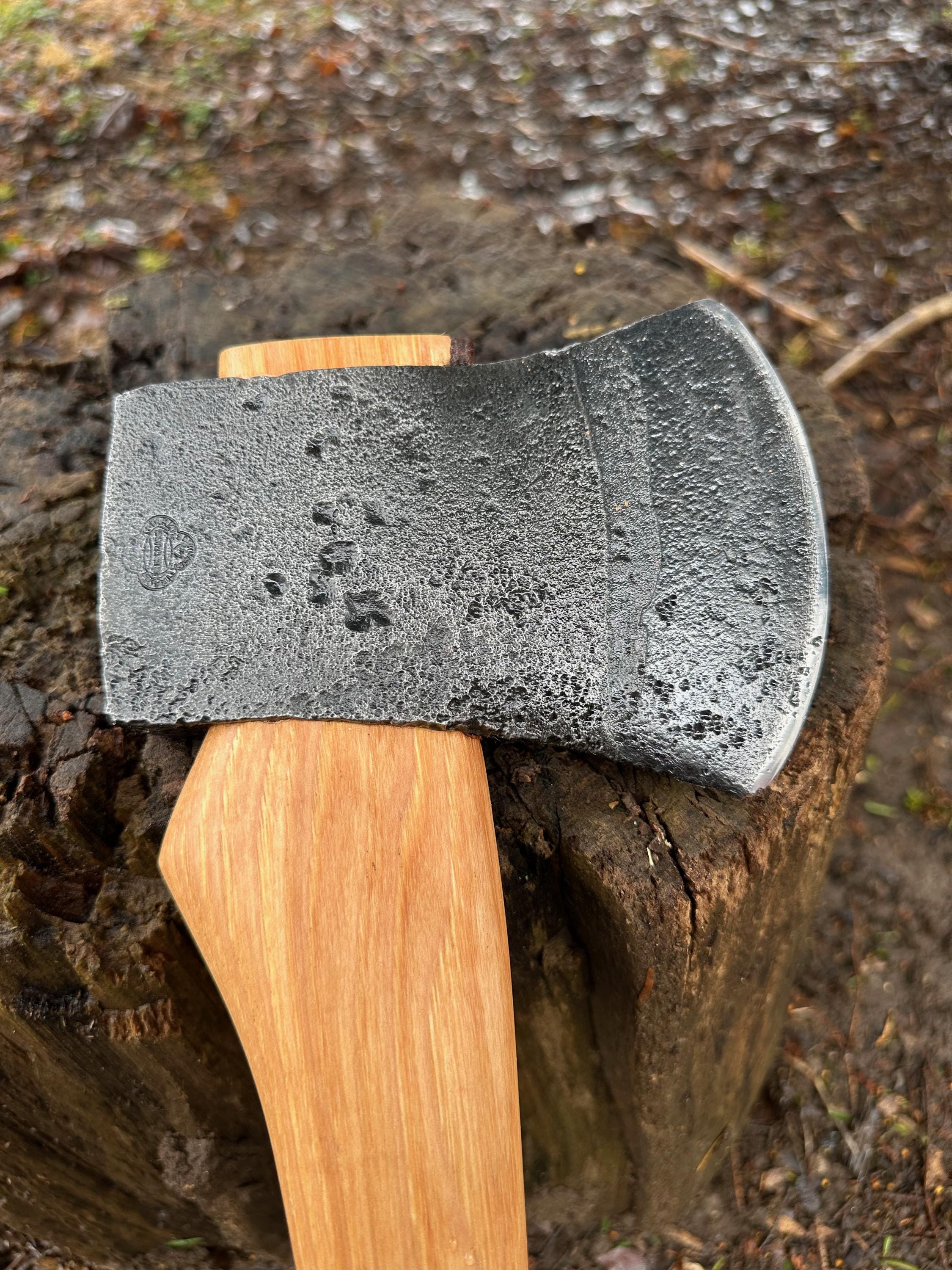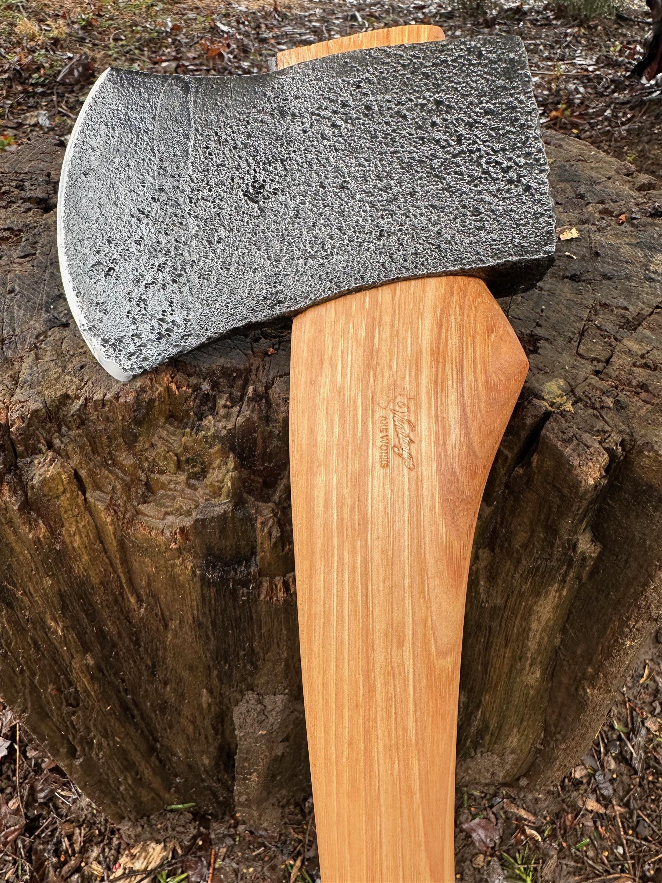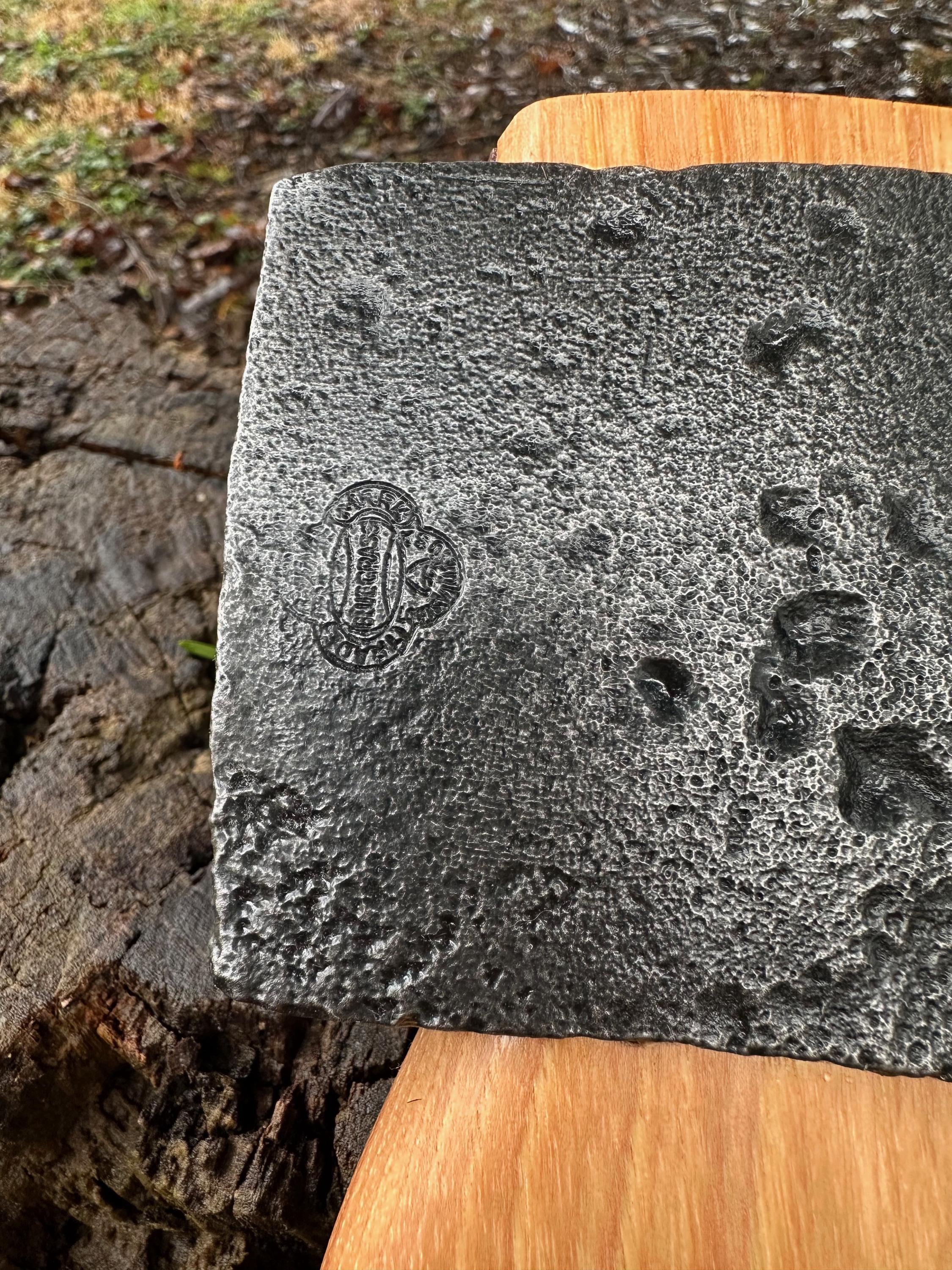 New French curve hickory handle has been HAND-SHAPED, hand sanded, soaked in Odie’s Oil and hand-rubbed for a clean, smooth look and feel. Clean seal around top and bottom of eye and hung with a hardwood wedge – handle sticks out from head approximately 3/16”.
