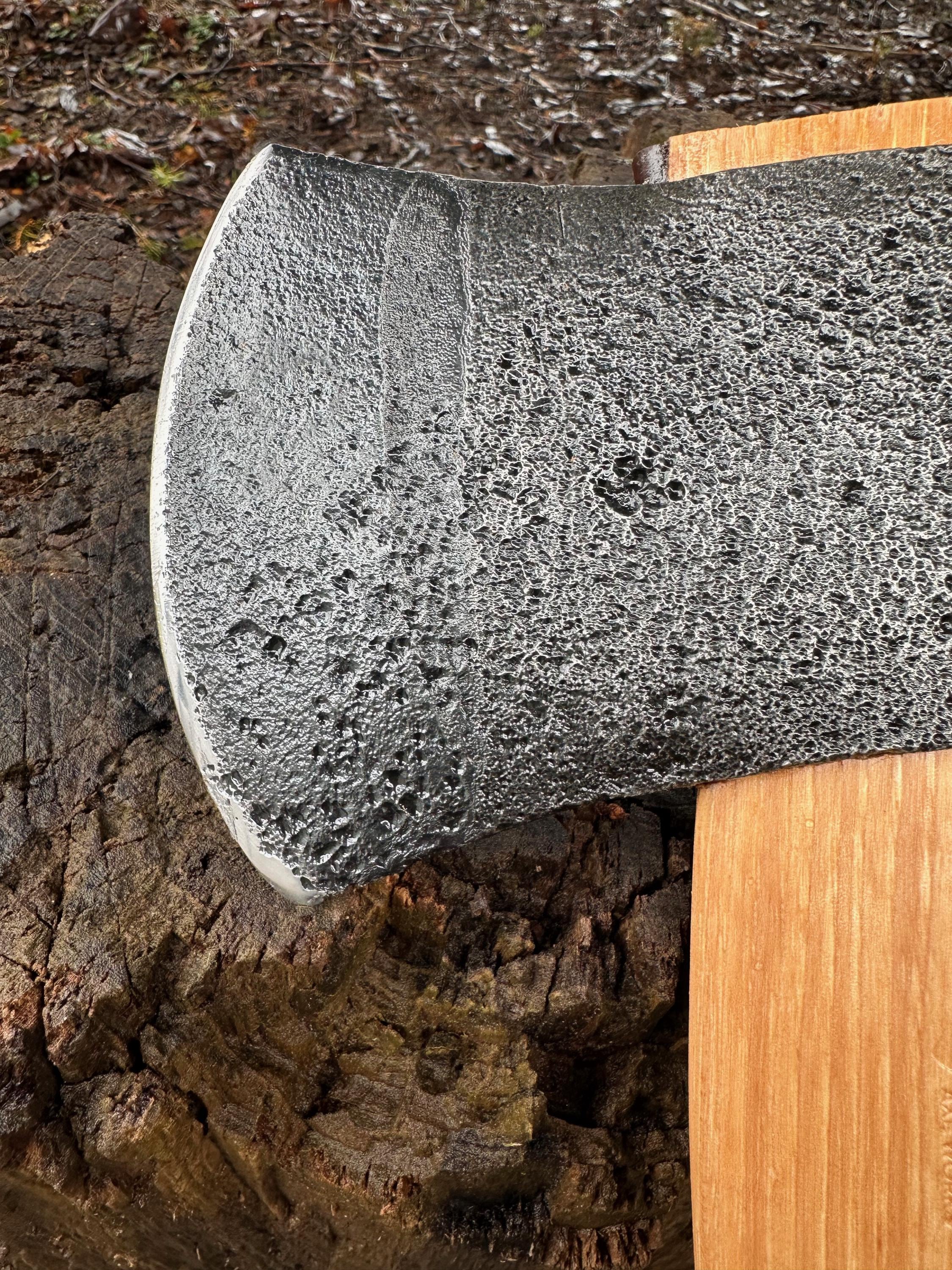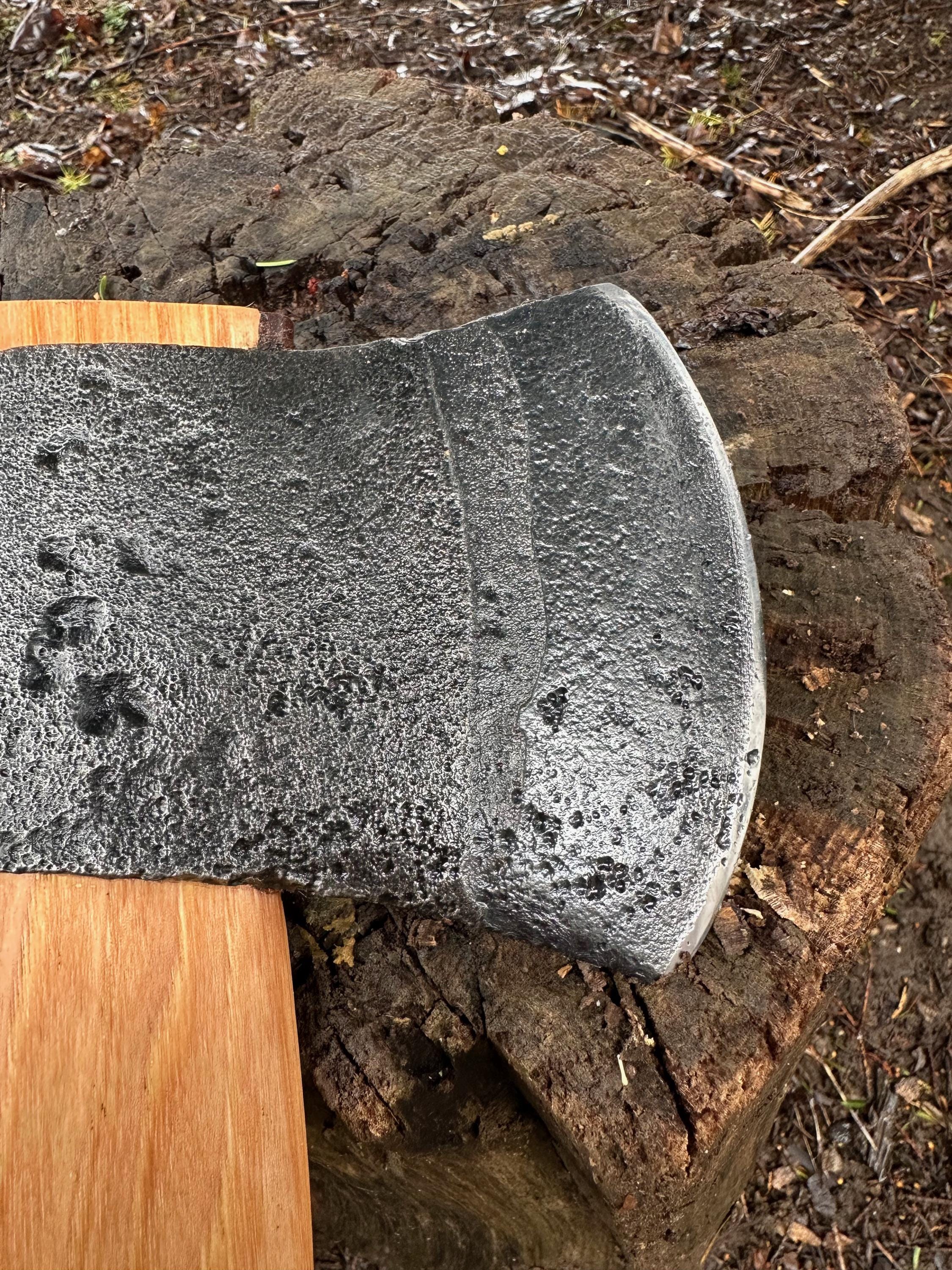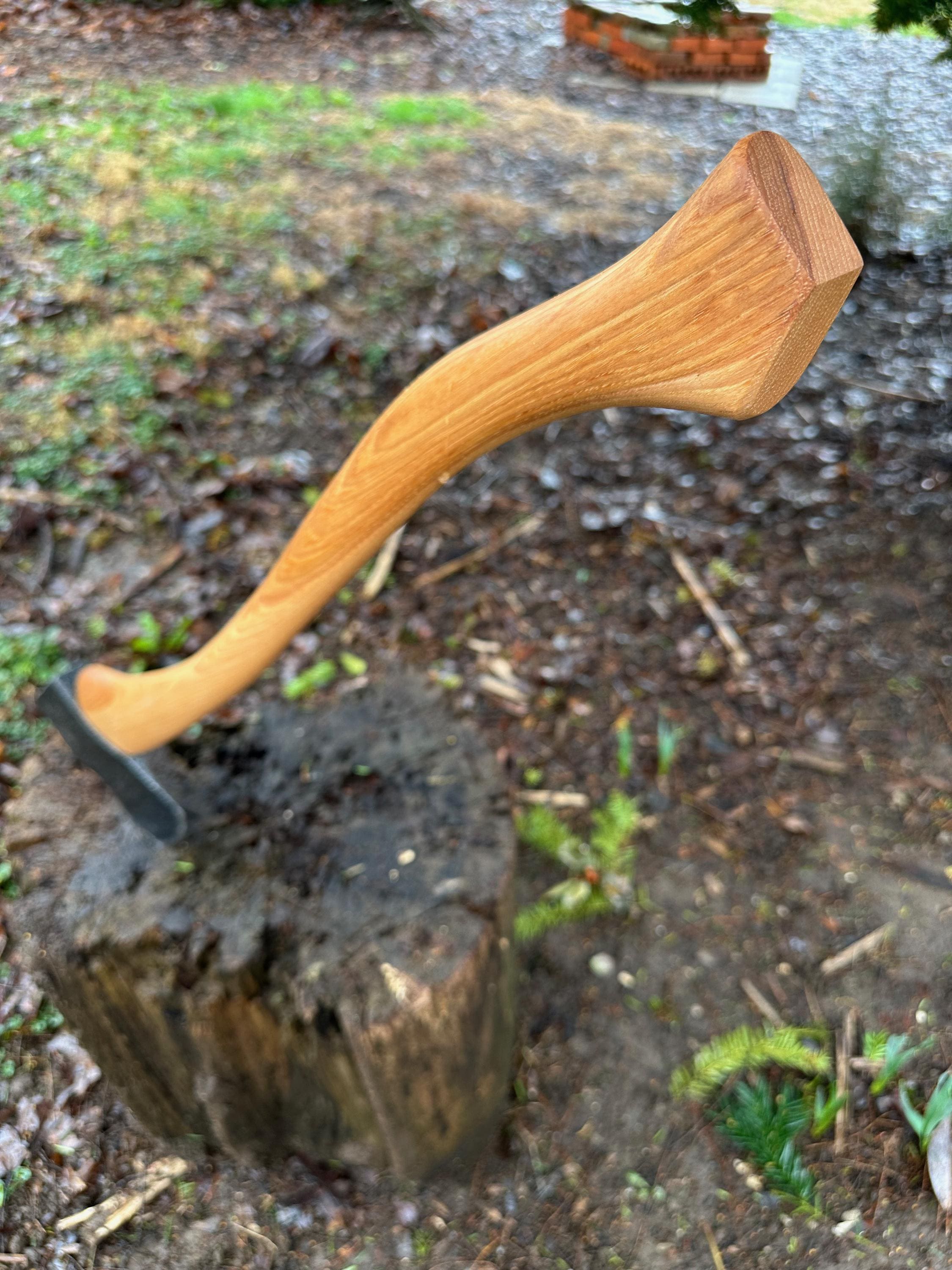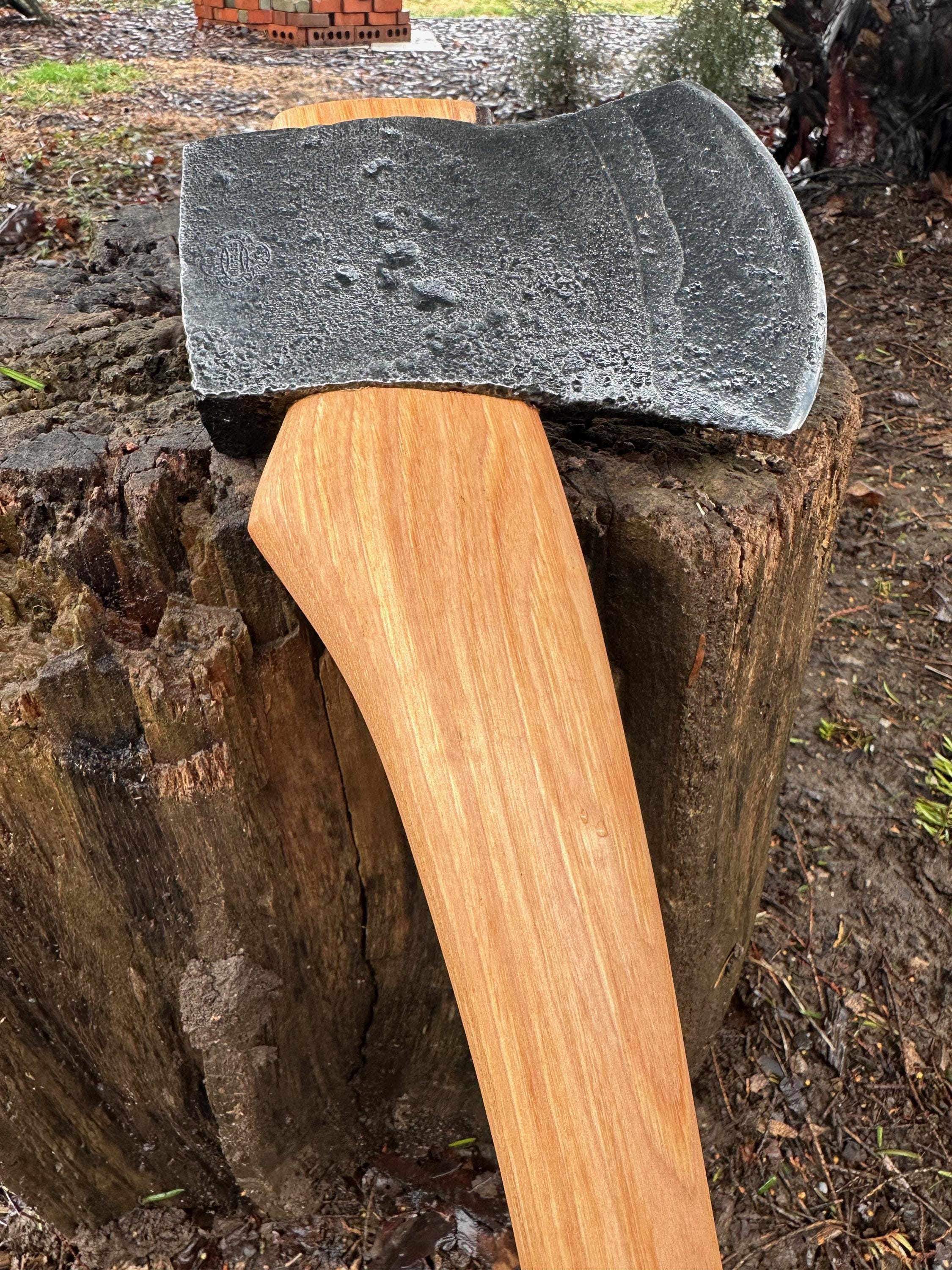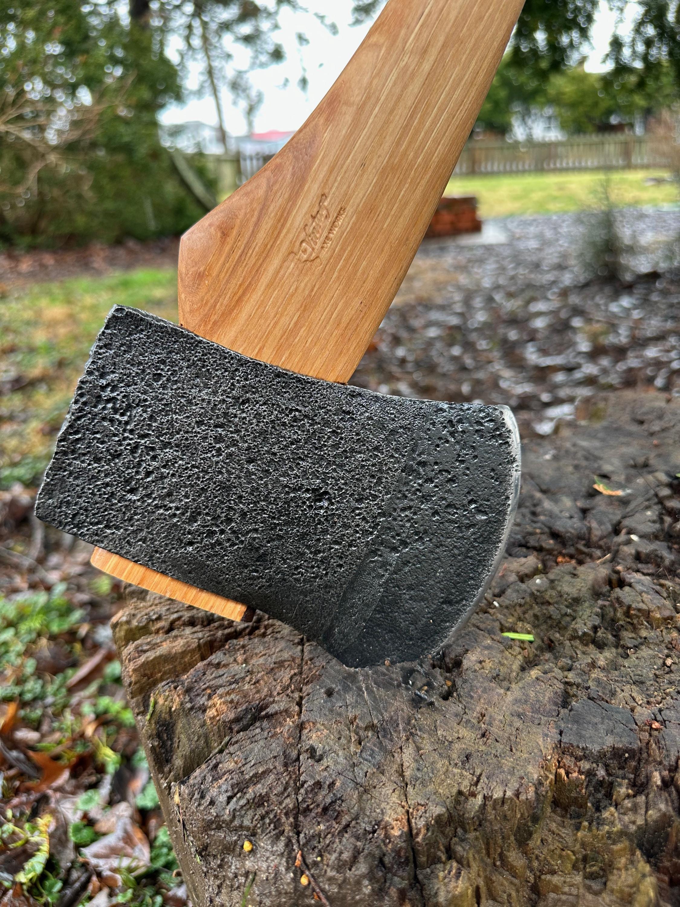 New French curve hickory handle has been HAND-SHAPED, hand sanded, soaked in Odie’s Oil and hand-rubbed for a clean, smooth look and feel. Clean seal around top and bottom of eye and hung with a hardwood wedge – handle sticks out from head approximately 3/16”.