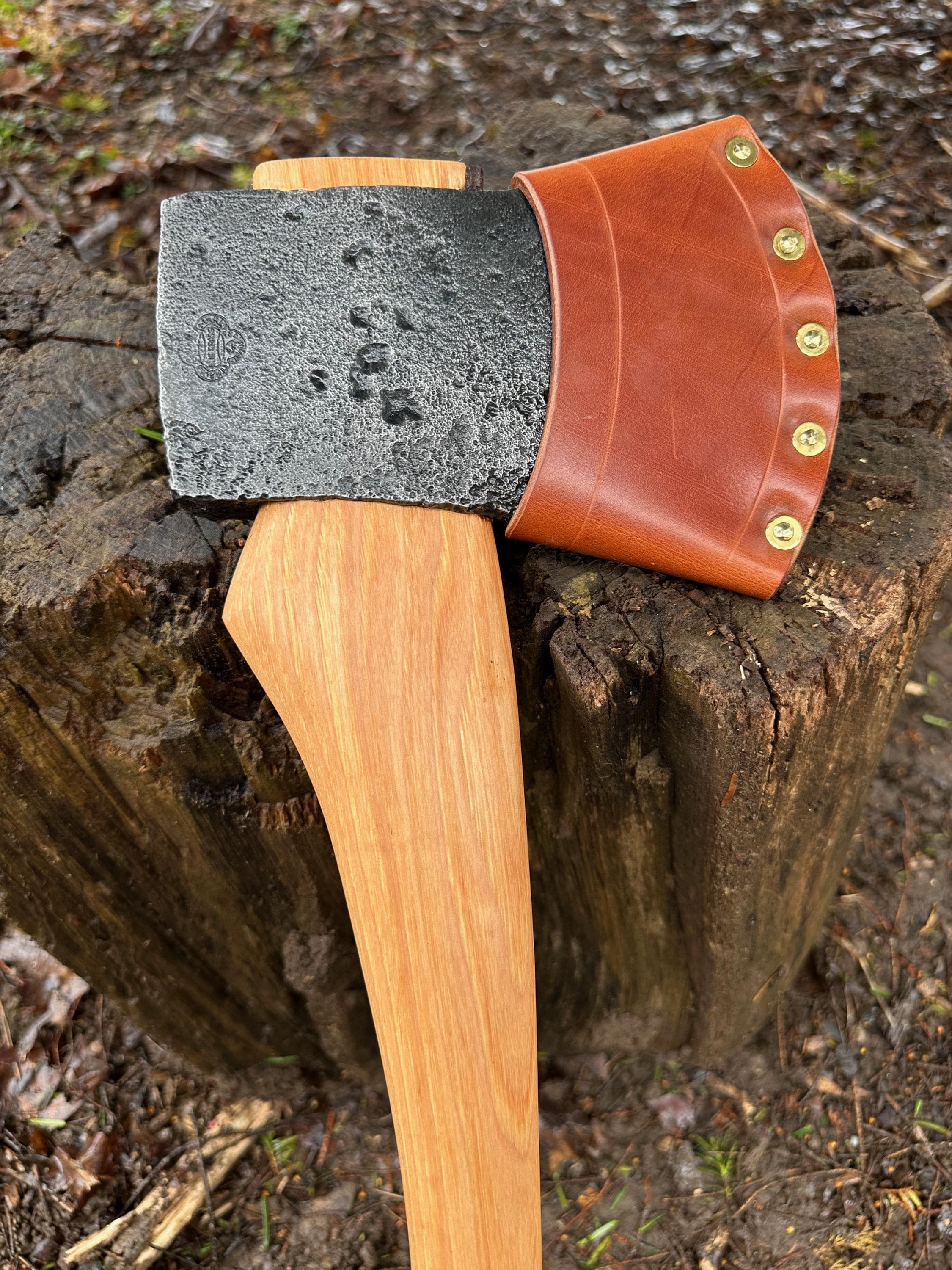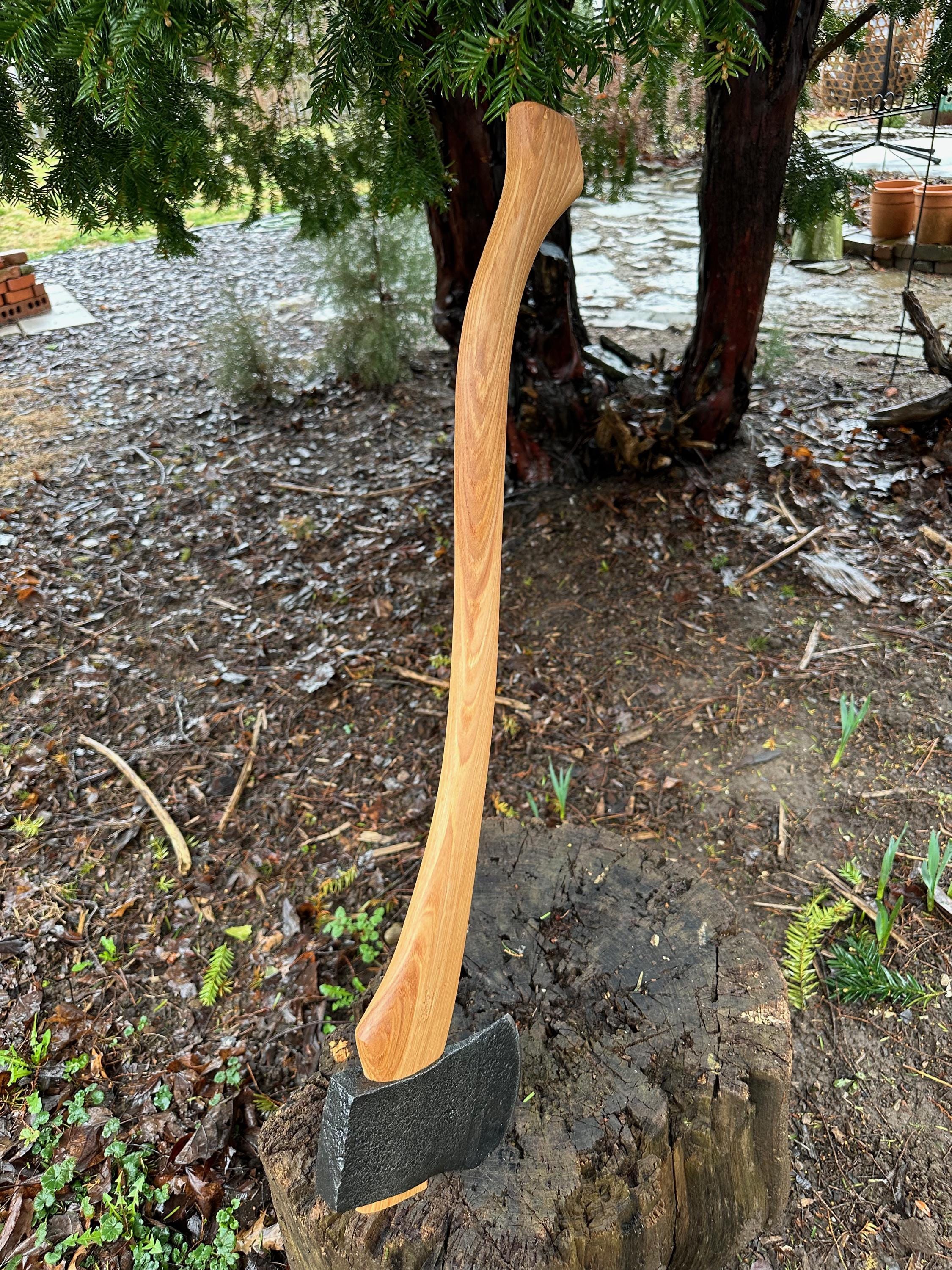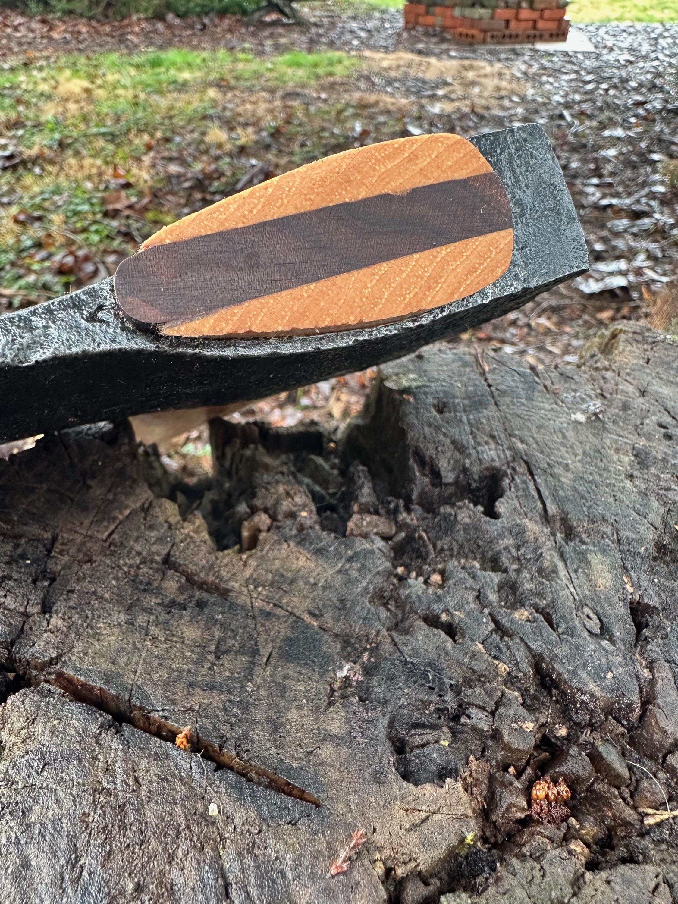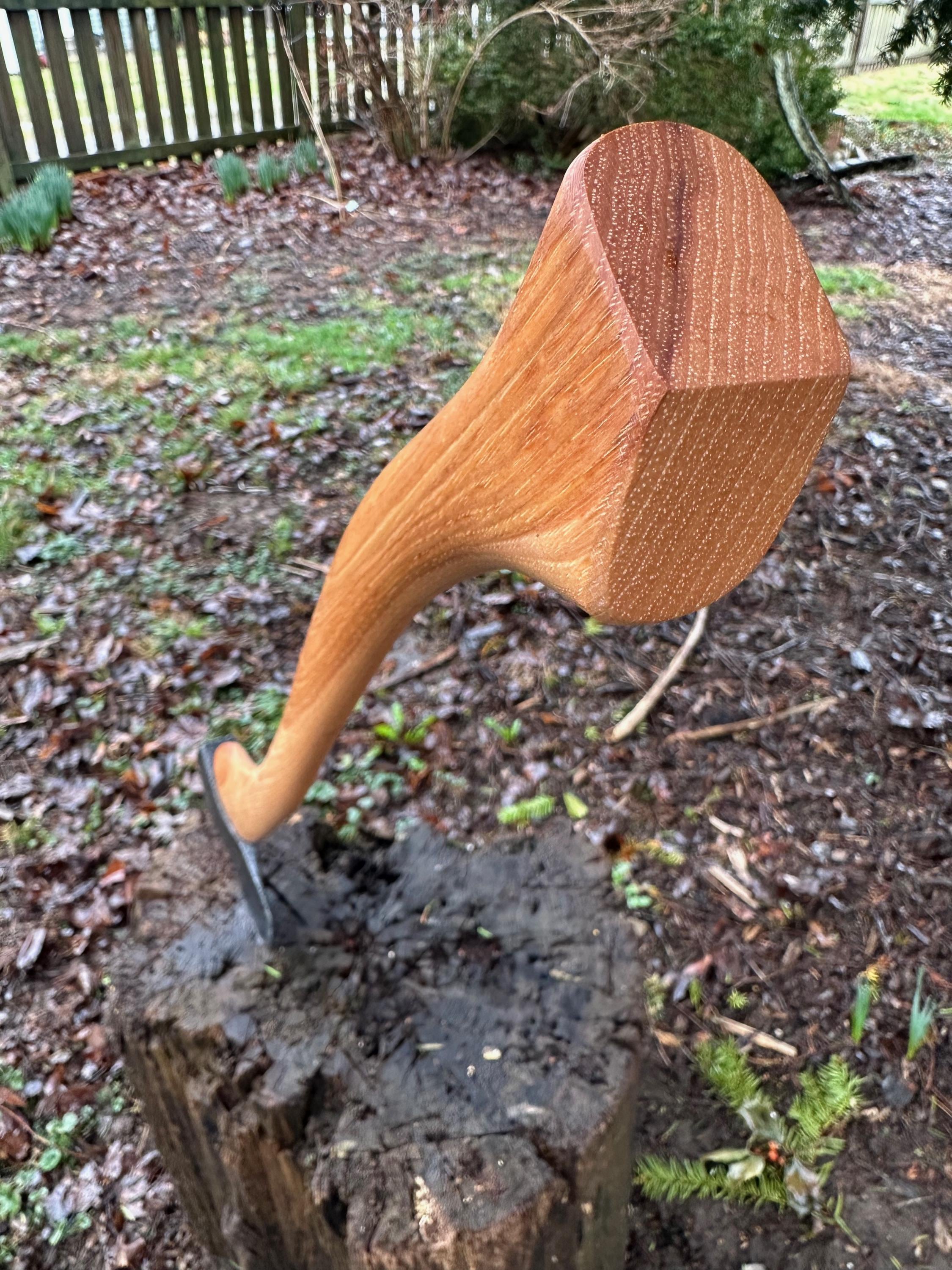 New French curve hickory handle has been HAND-SHAPED, hand sanded, soaked in Odie’s Oil and hand-rubbed for a clean, smooth look and feel. Clean seal around top and bottom of eye and hung with a hardwood wedge – handle sticks out from head approximately 3/16”.